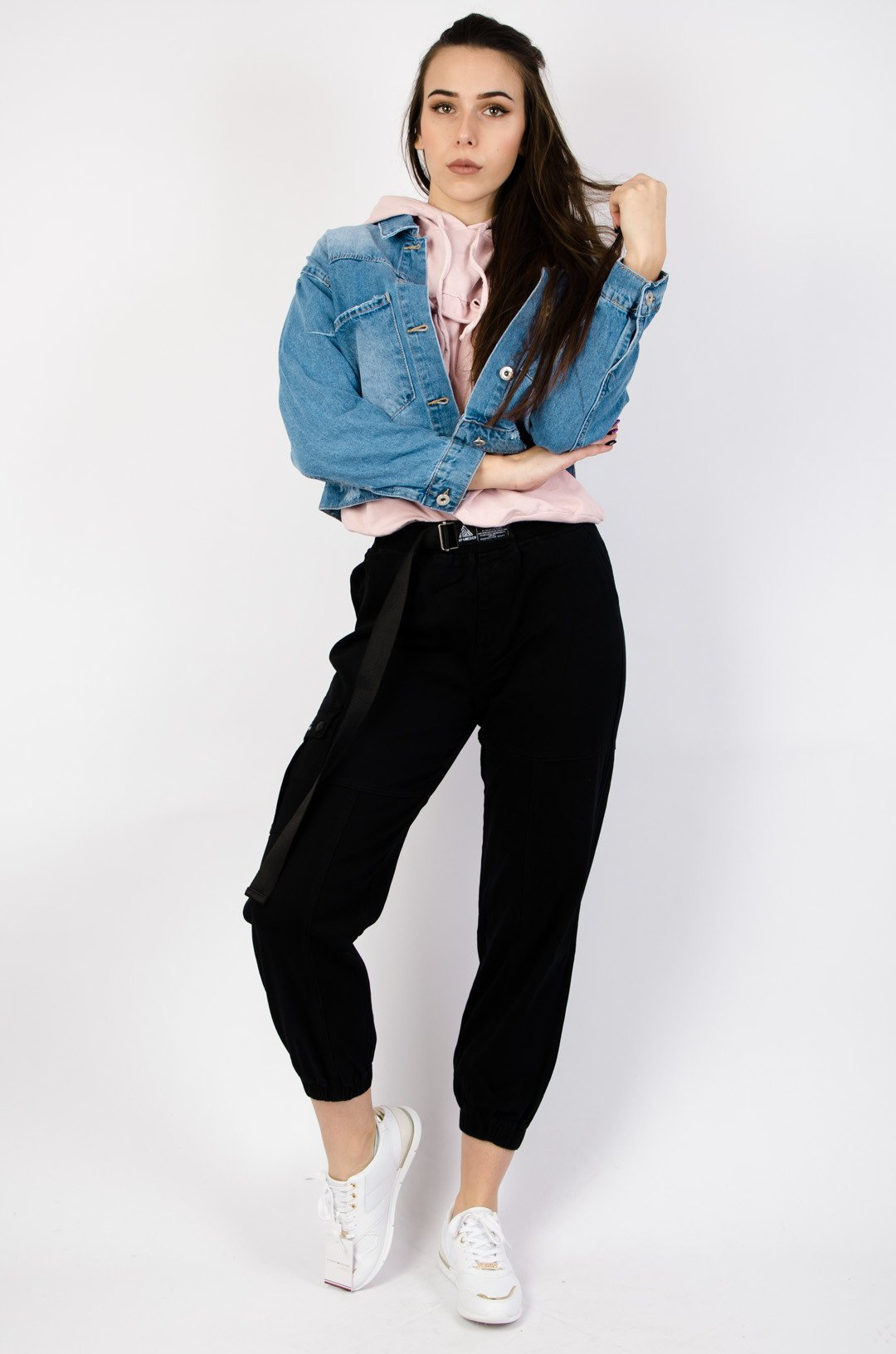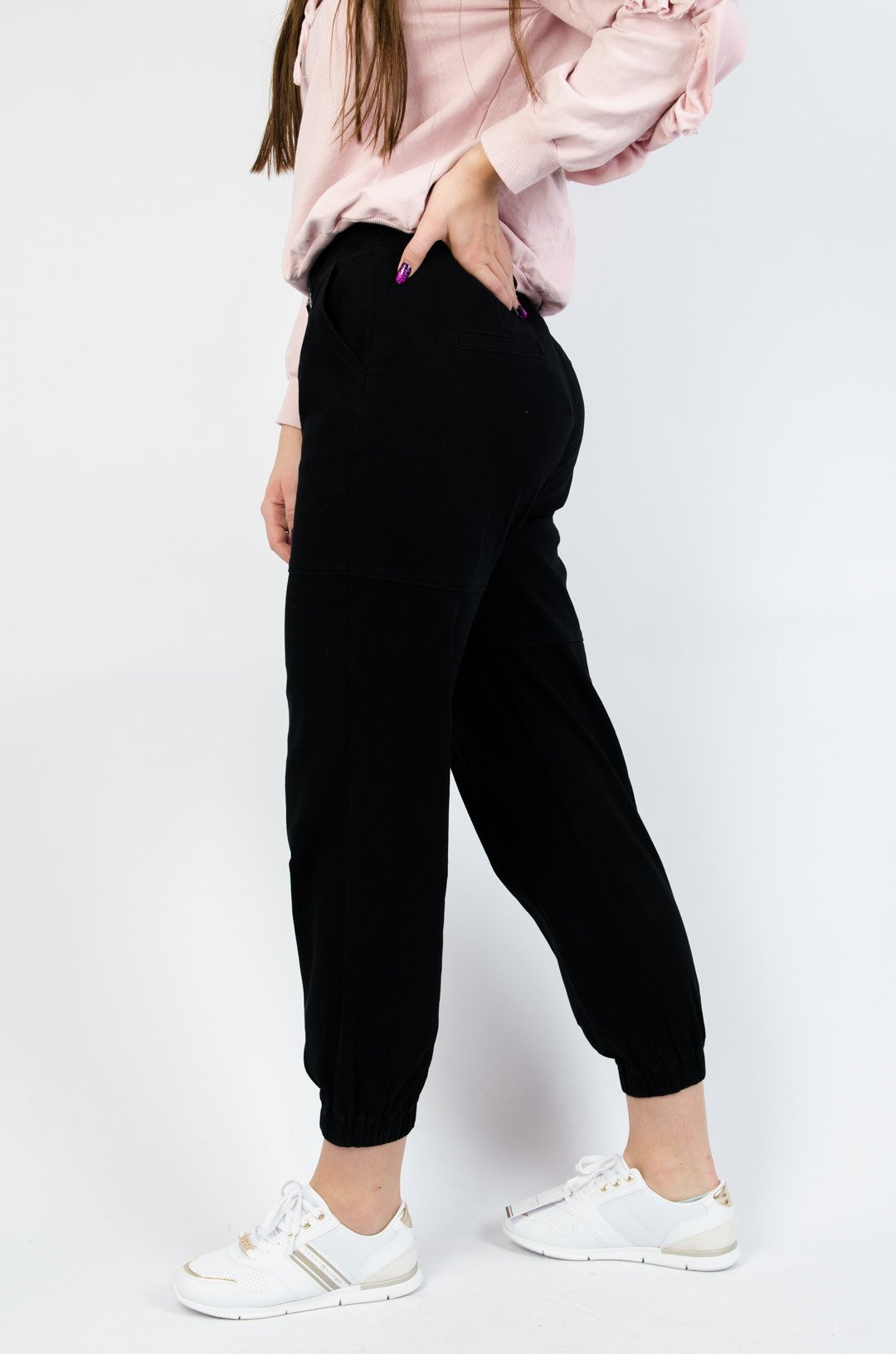 CZARNE SPODNIE TYPU JOGGER Z WYSOKIM STANEM