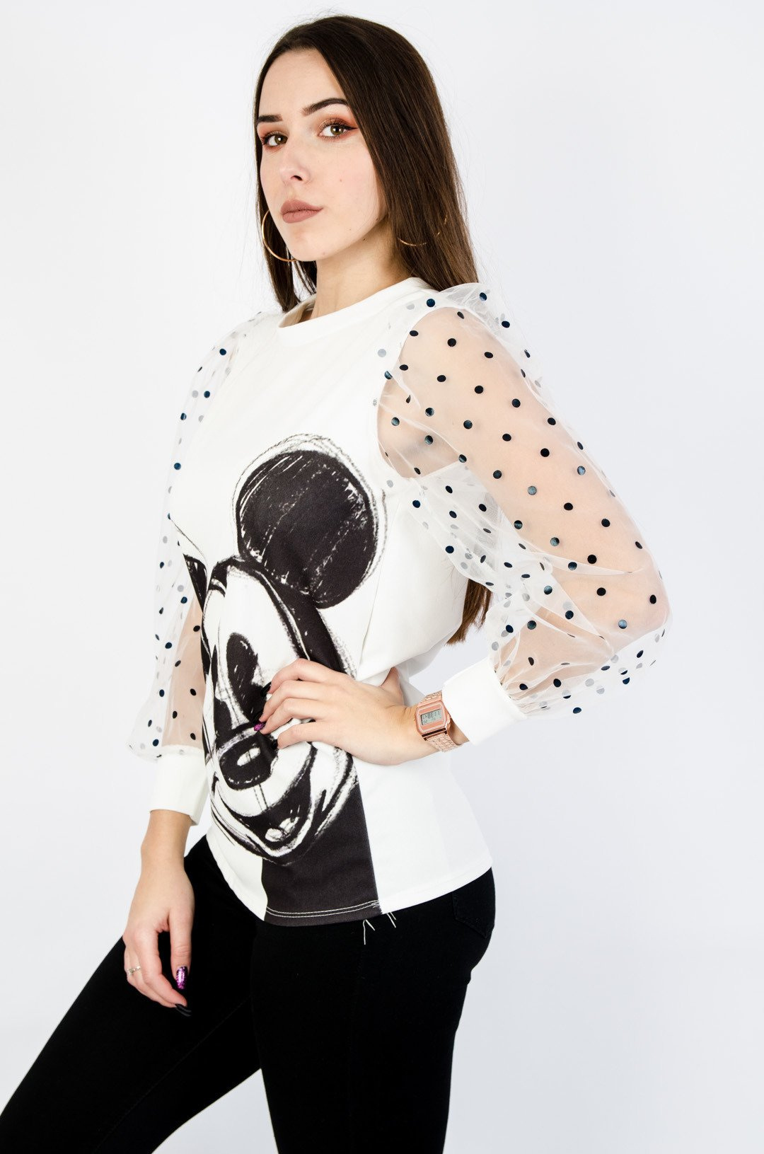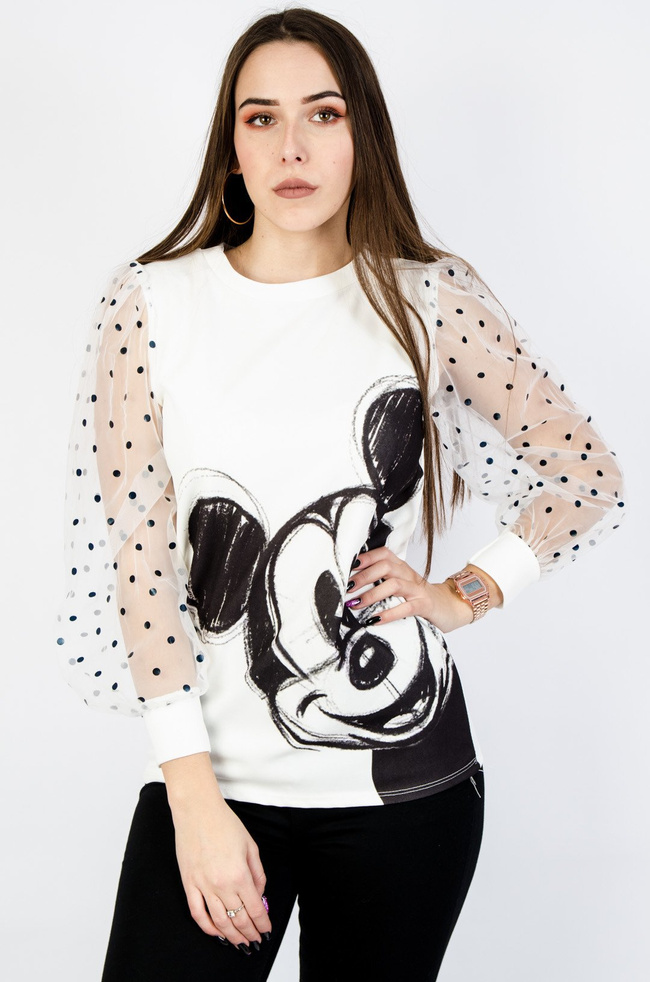 BIAŁA BLUZKA Z TIULOWYMI RĘKAWAMI
