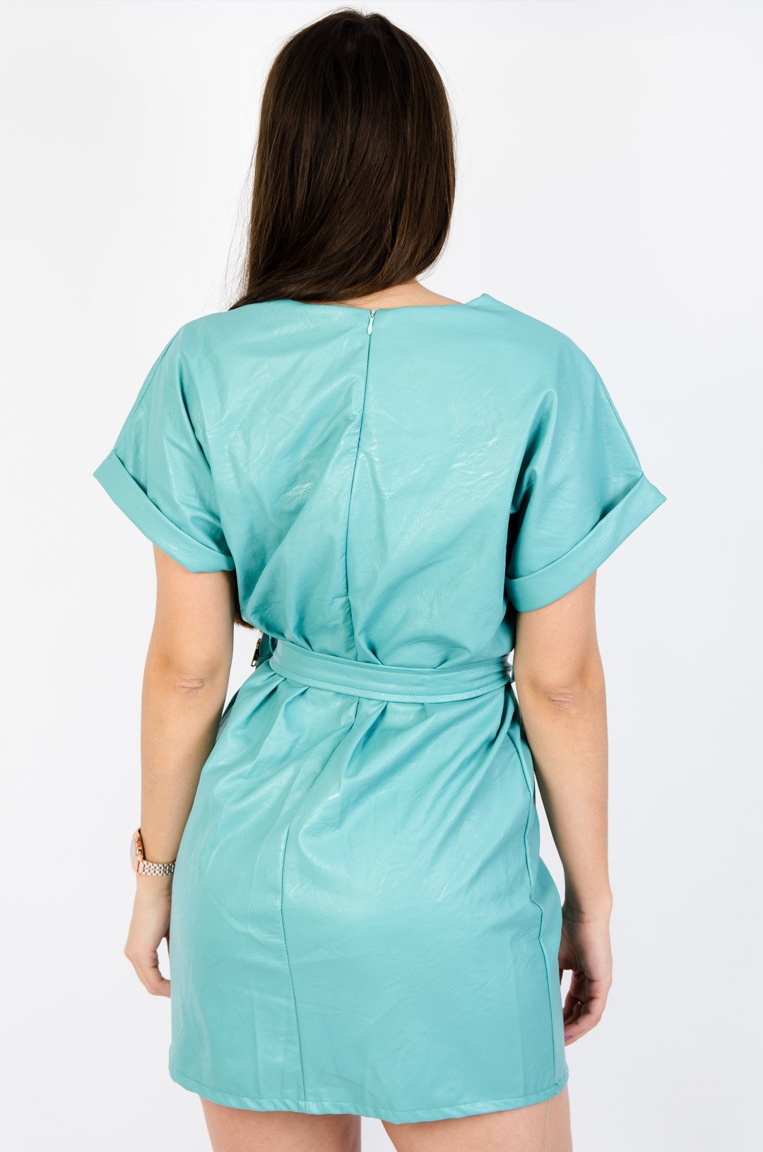 ZIELONA SUKIENKA Z IMITACJI SKÓRY Z NERKĄ