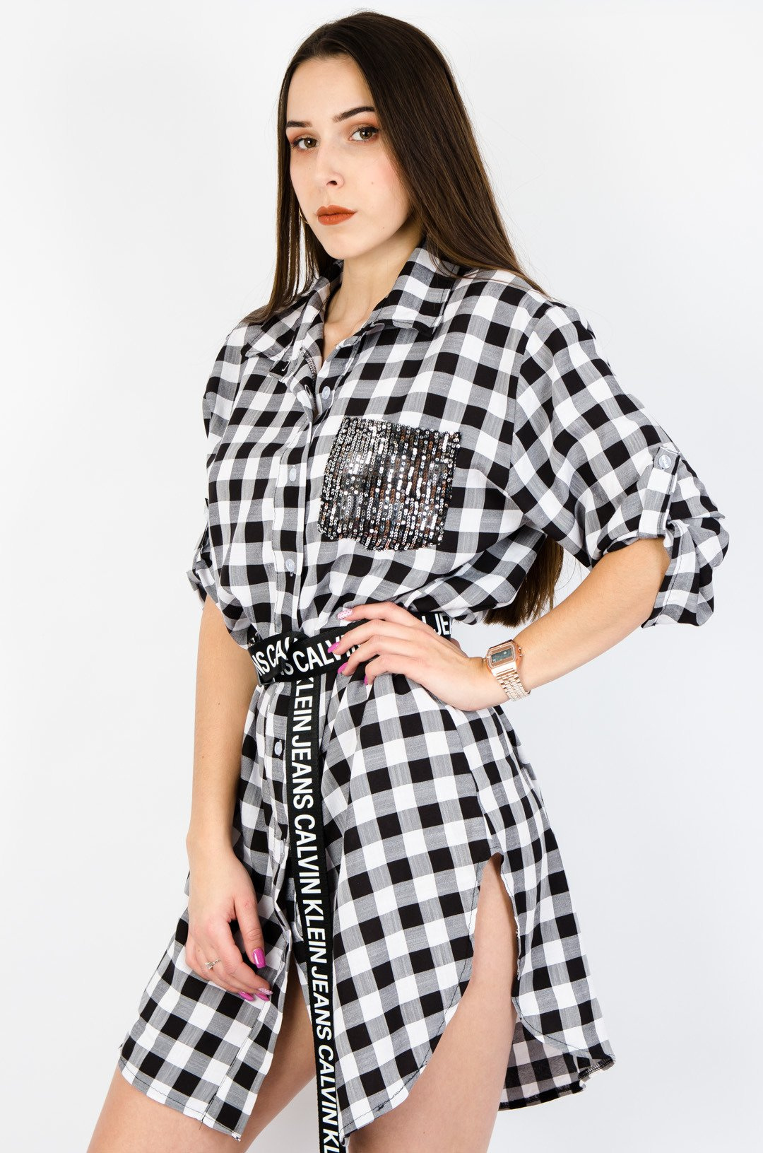 SUKIENKA KOSZULOWA W KRATĘ