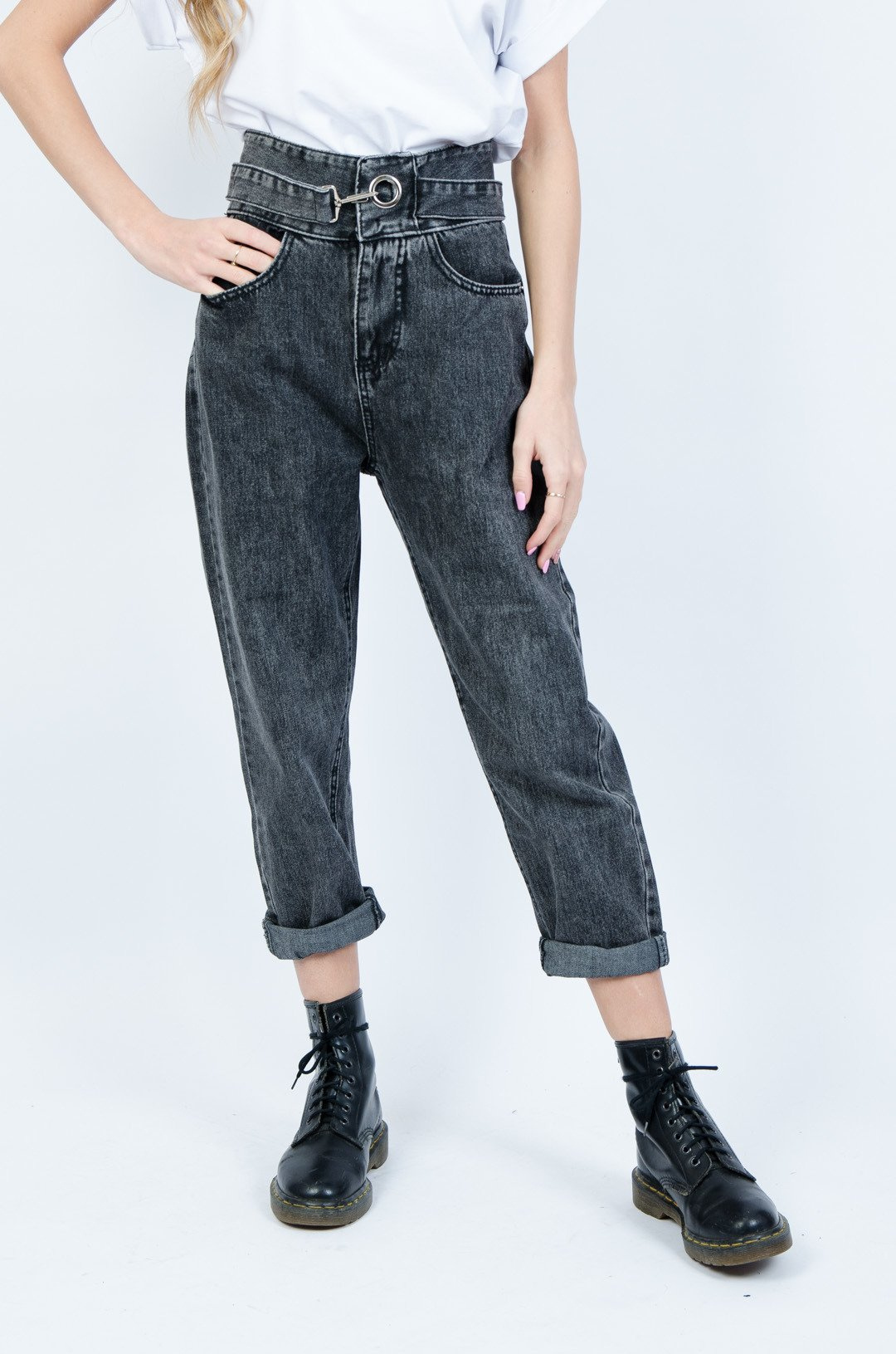 CIEMNO SZARE SPODNIE JEANSOWE TYPU BALLOON Z WYSOKIM STANEM