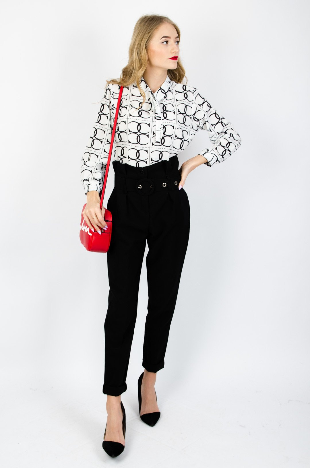 CZARNE ELEGANCKIE SPODNIE Z WYSOKIM STANEM + PASEK
