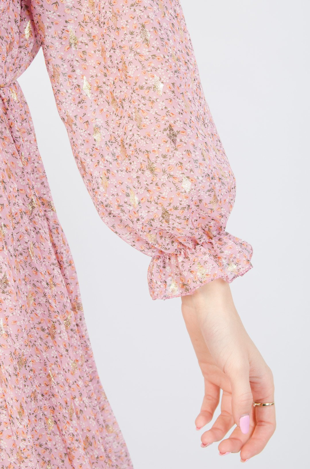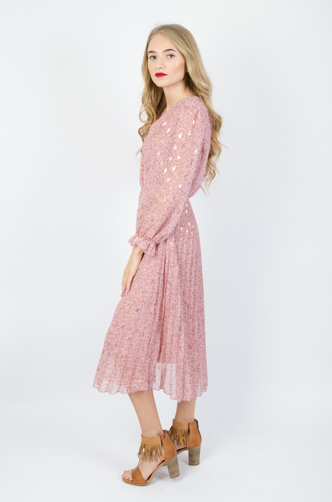 RÓŻOWA SUKIENKA W KWIATY Z PLISOWANYM DOŁEM