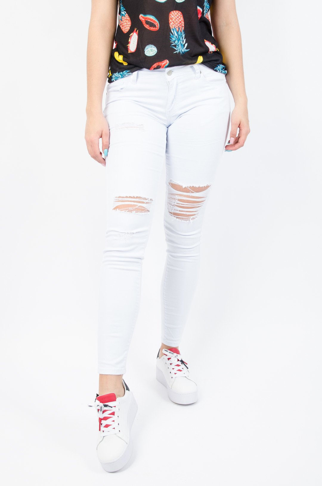 SPODNIE Z PRZETARCIAMI W KOLORZE BIAŁYM