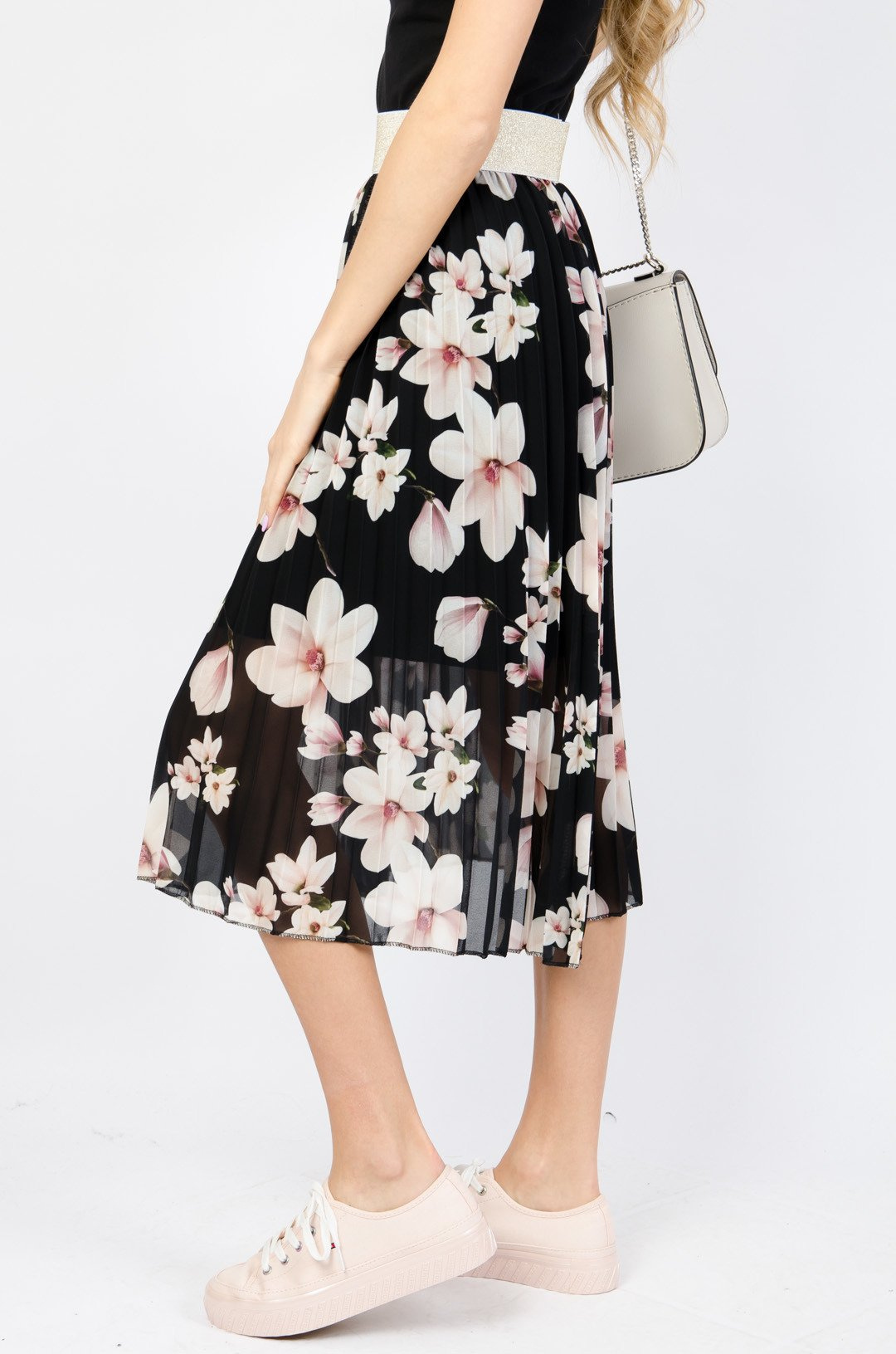 PLISOWANA SPÓDNICA W KWIATY W KOLORZE CZARNYM