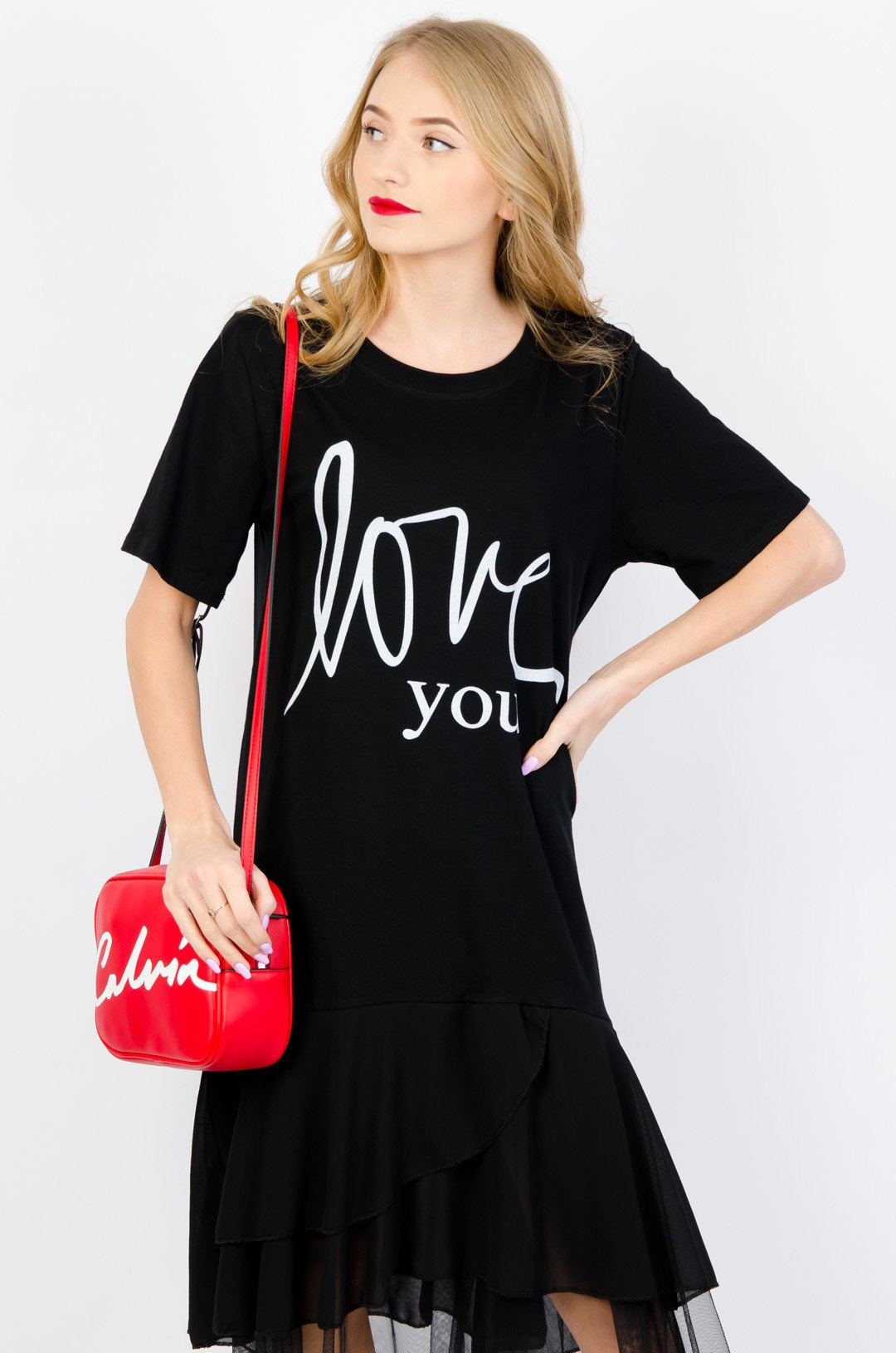 CZARNA BAWEŁNIANA SUKIENKA Z TIULEM