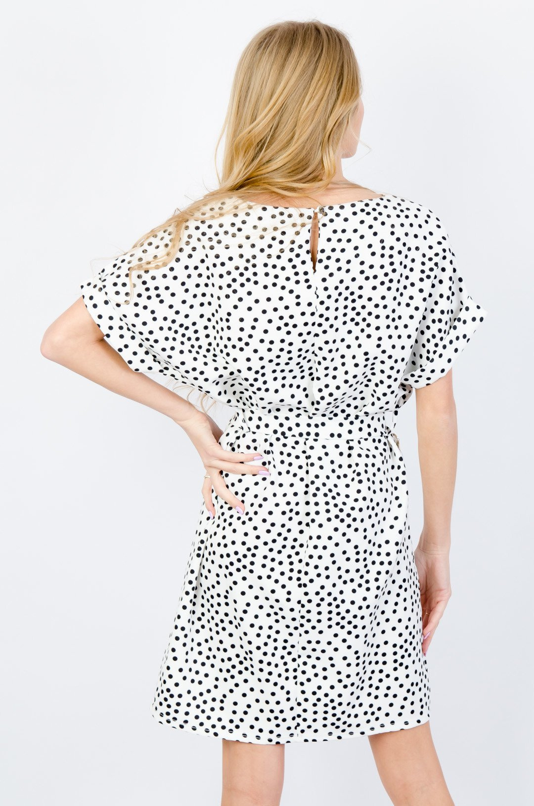 BIAŁA SUKIENKA W KROPKI Z NERKĄ