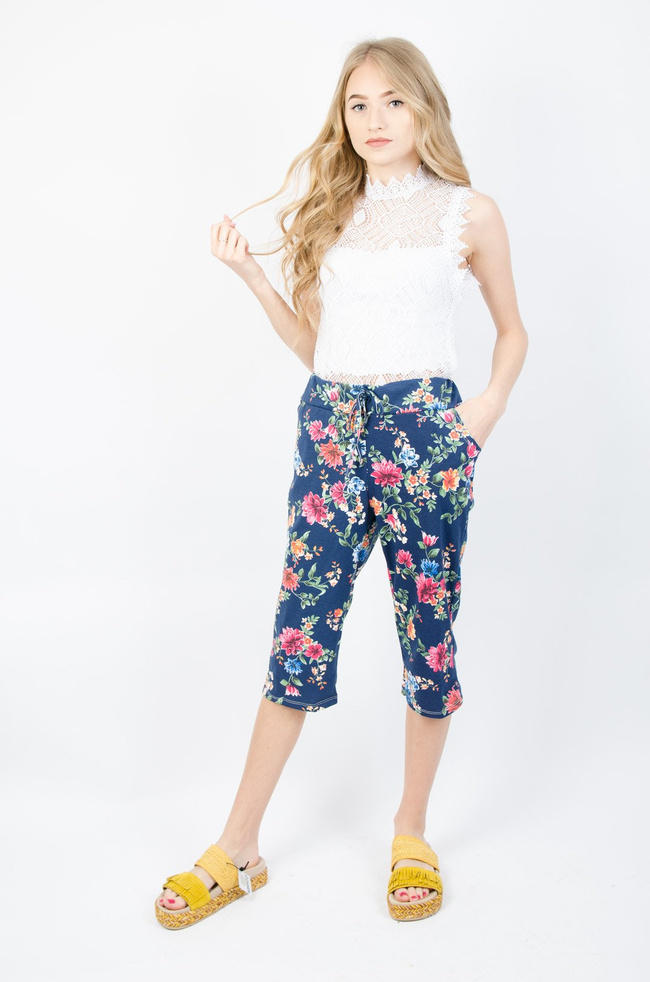 GRANATOWE RYBACZKI DRESOWE W KOLOROWE KWIATY