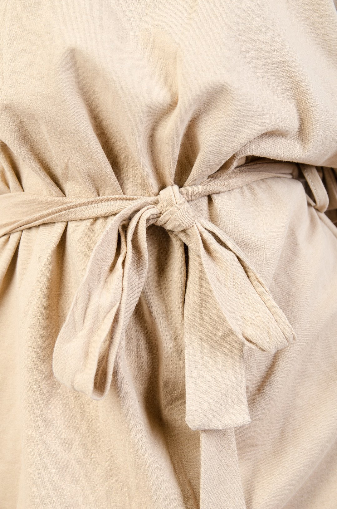 BEŻOWA BAWEŁNIANA SUKIENKA W WYCIĘCIEM NA RAMIENIU