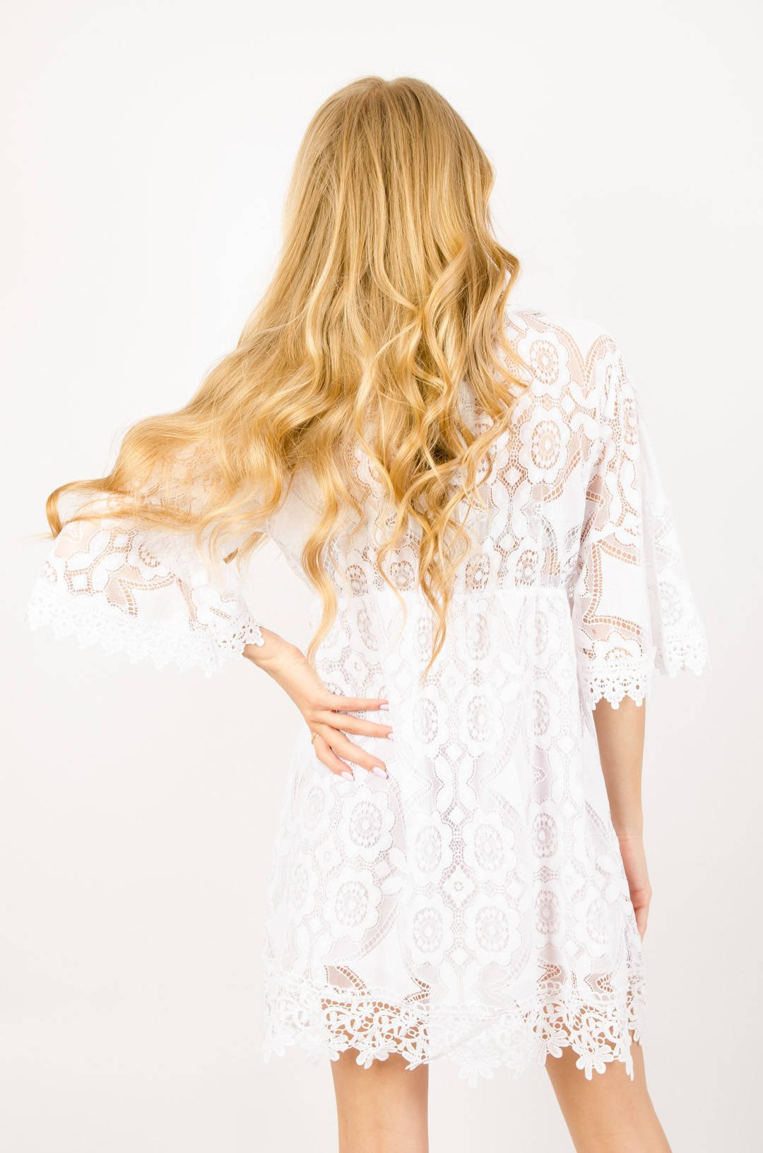 BIAŁA KORONKOWA SUKIENKA ZE ZDOBIENIEM