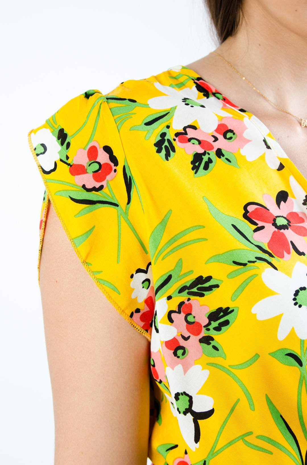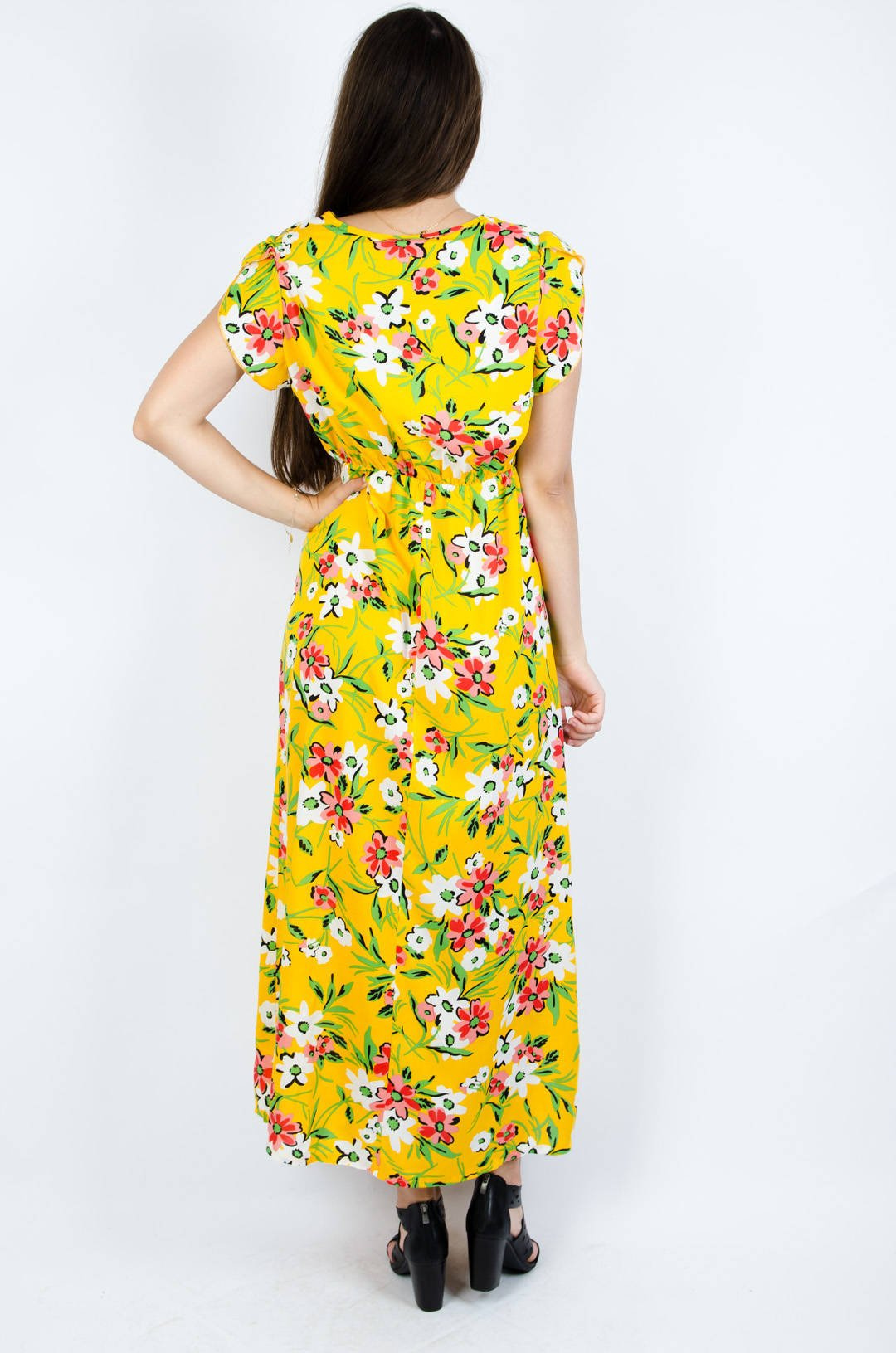 ŻÓŁTA SUKIENKA MAXI Z KOPERTOWYM DEKOLTEM