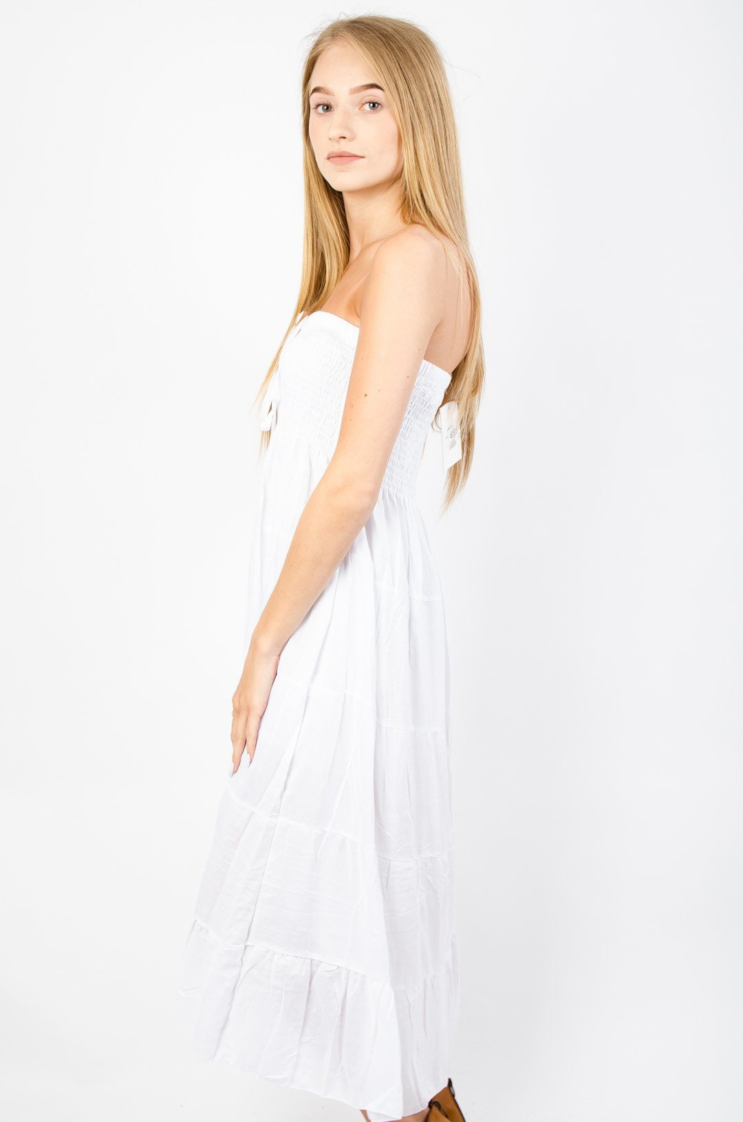 BIAŁA ZWIEWNA SUKIENKA Z WIĄZANIEM