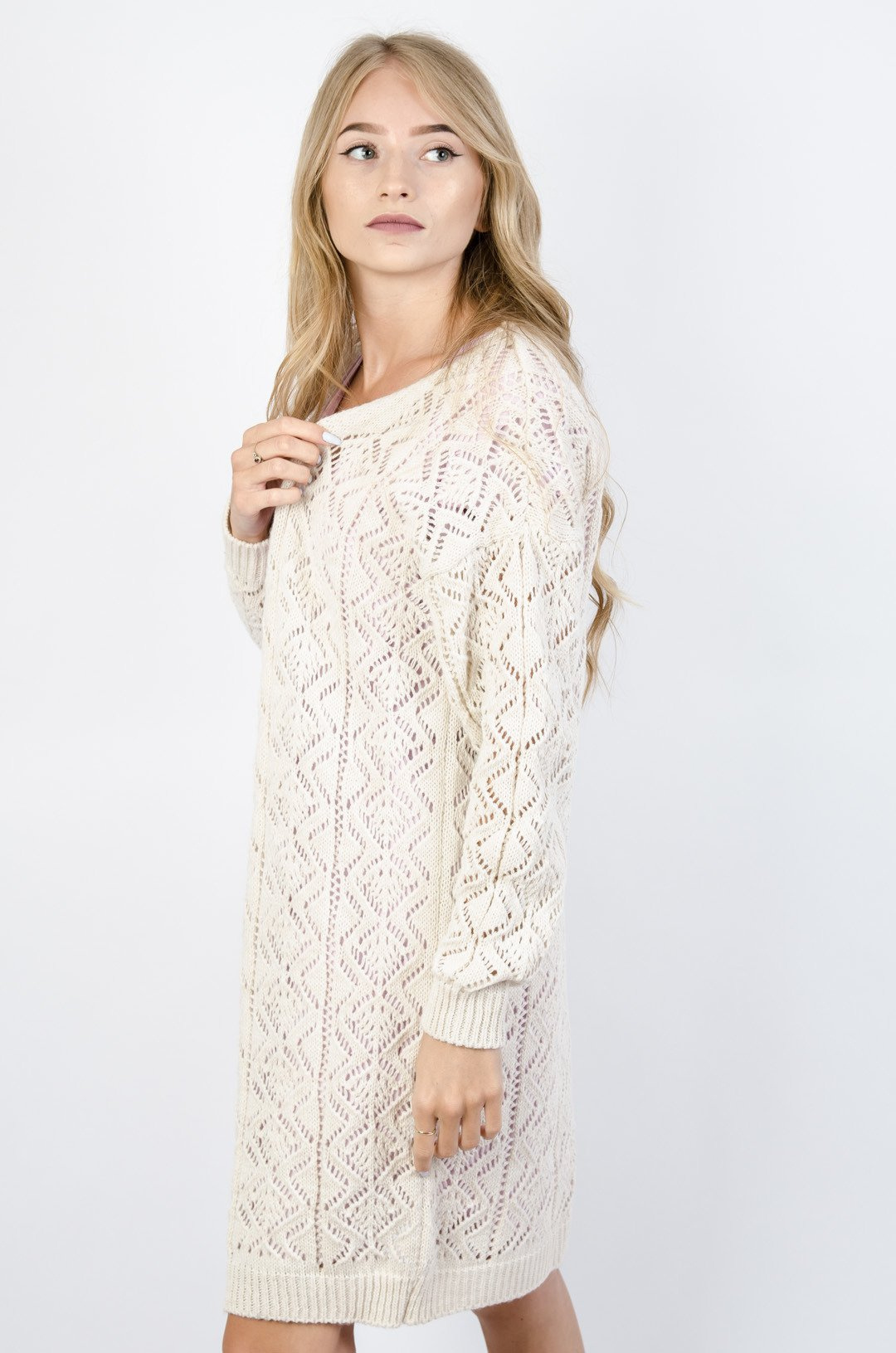 DŁUGI BEŻOWY AŻUROWY SWETER