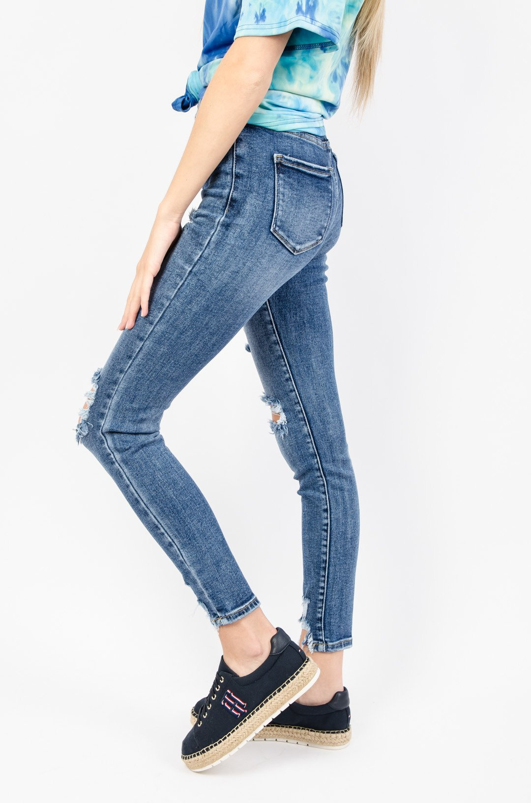 CIEMNE JEANSOWE SPODNIE Z PRZETARCIAMI