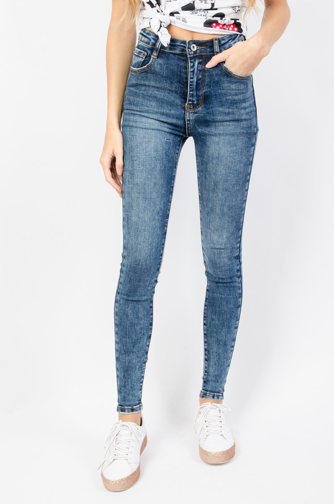 CIEMNE SPODNIE JEANSOWE Z WYSOKIM STANEM