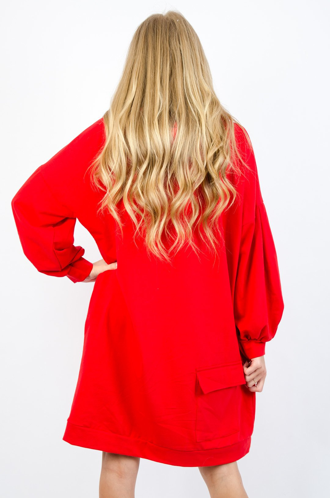 DŁUGA CZERWONA BLUZA Z KIESZENIĄ Z TYŁU