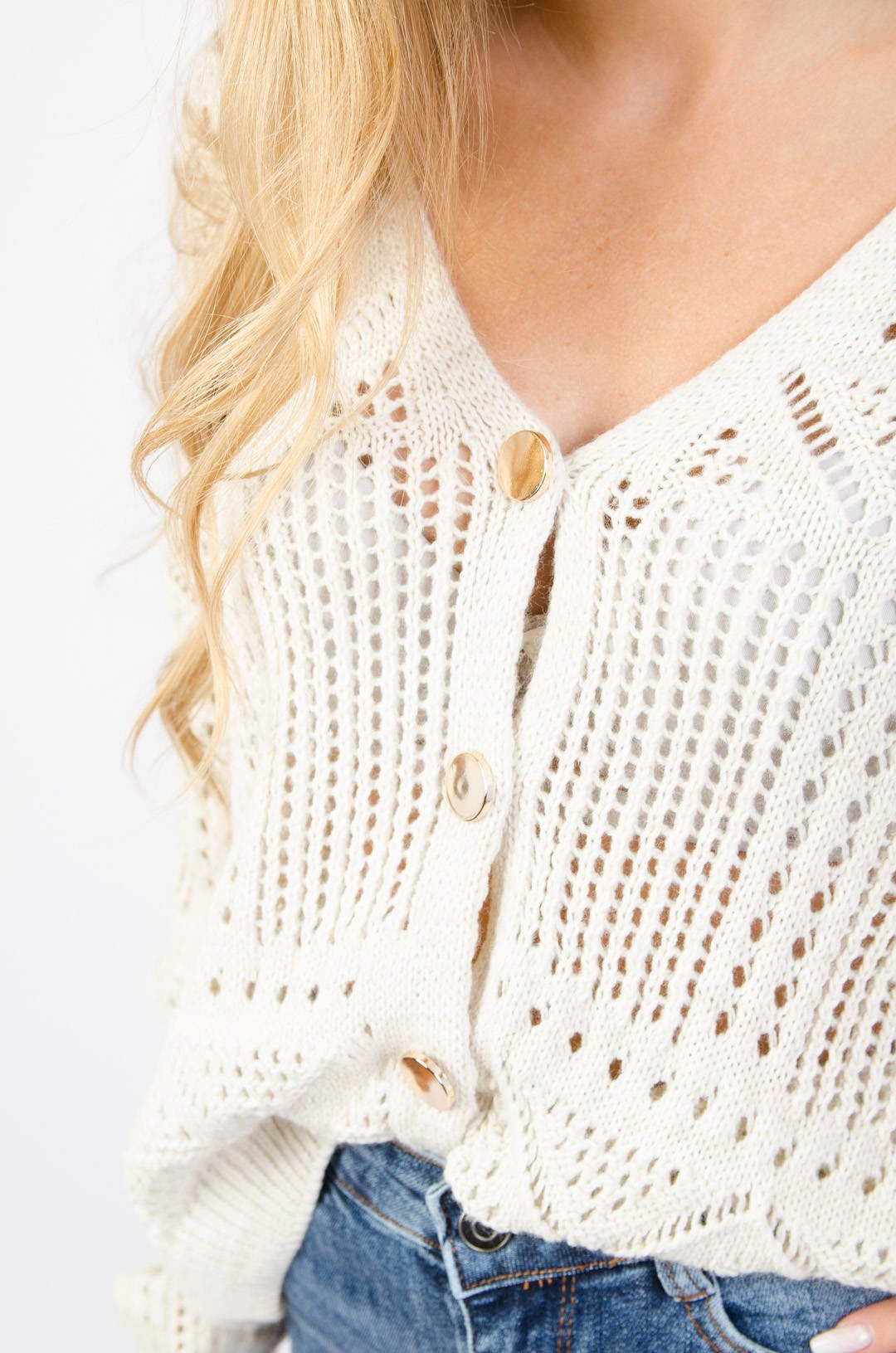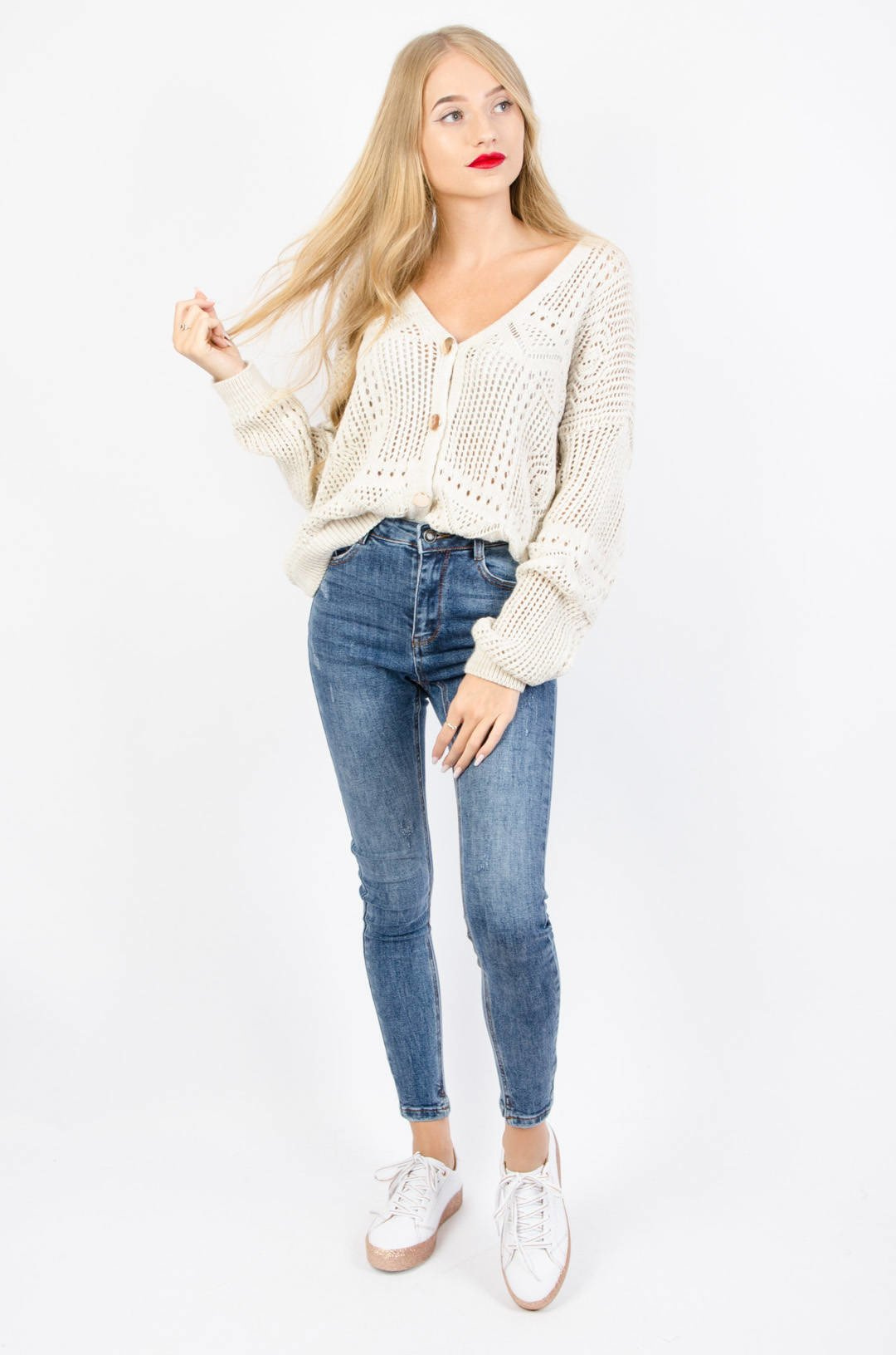 BEŻOWY AŻUROWY SWETER ZAPINANY NA GUZIKI
