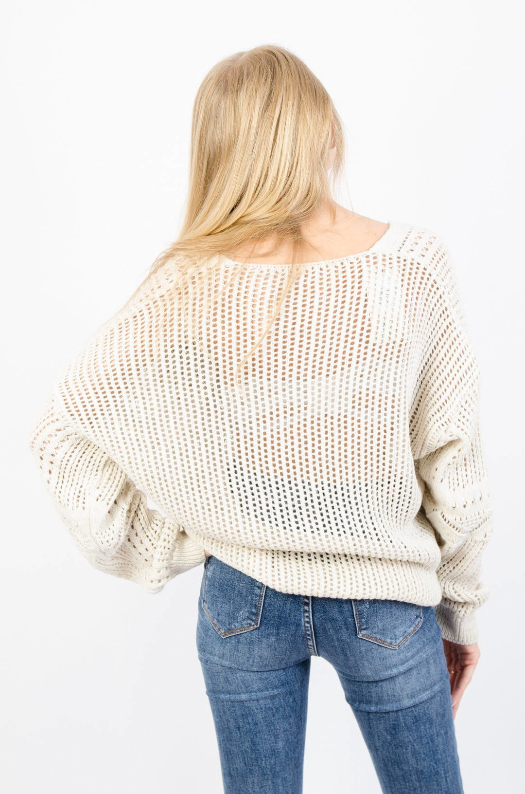 BEŻOWY AŻUROWY SWETER ZAPINANY NA GUZIKI