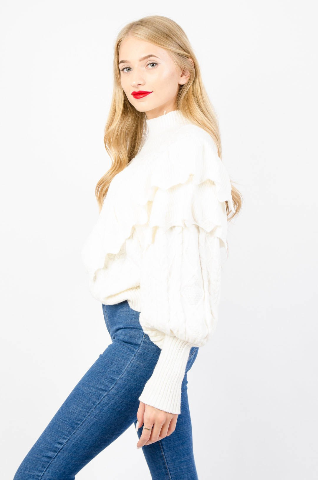 KREMOWY SWETER Z PÓŁGOLFEM