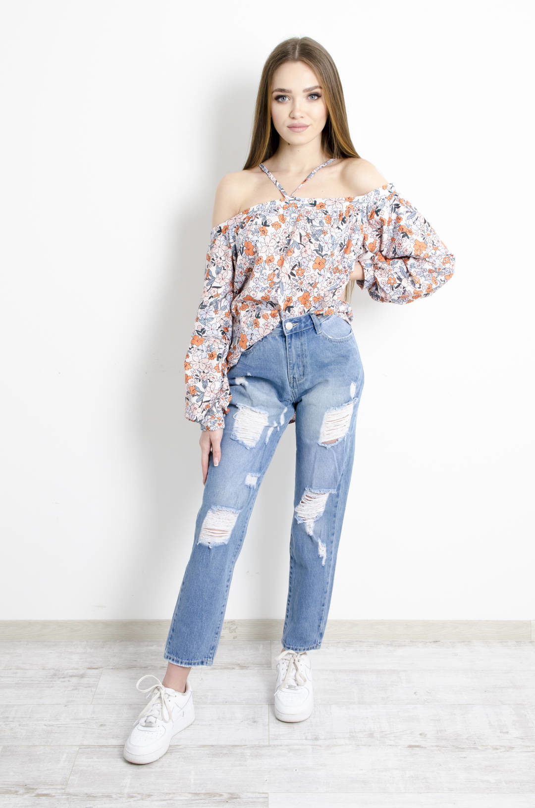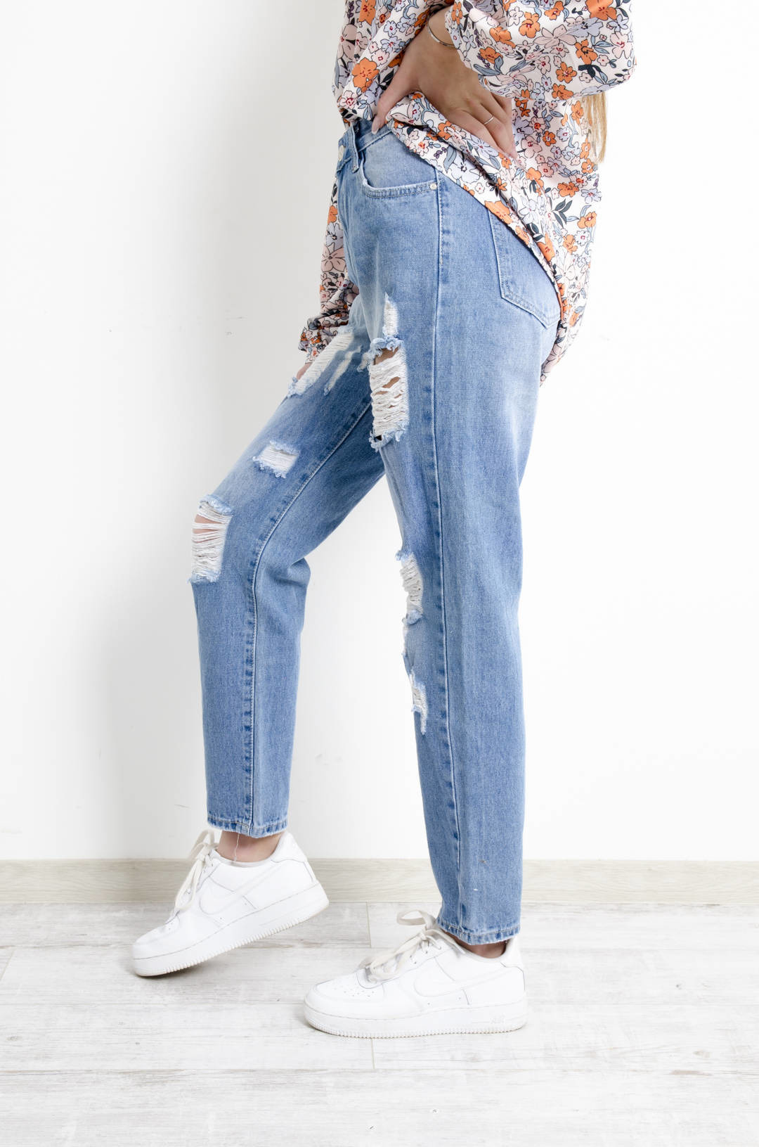 JASNE SPODNIE JEANSOWE TYPU BOYFRIEND Z PRZETARCIAMI