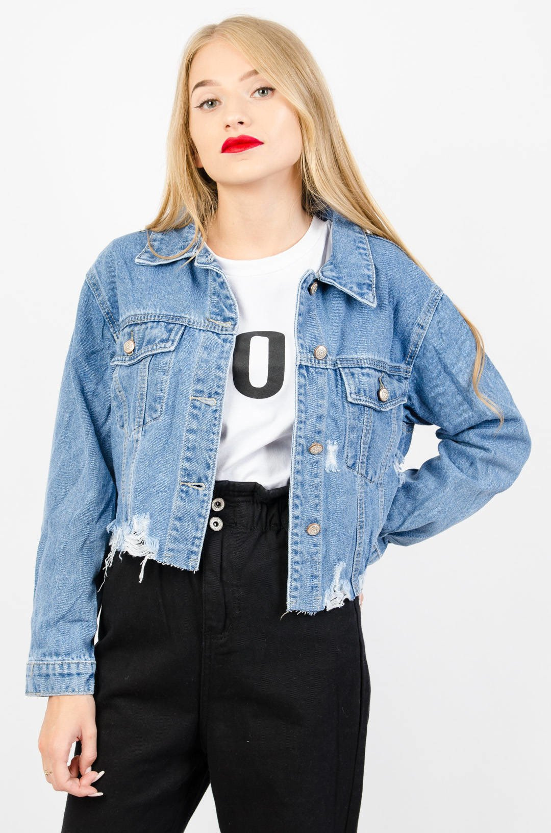 KRÓTKA KURTKA JEANSOWA Z SZARPANIAMI