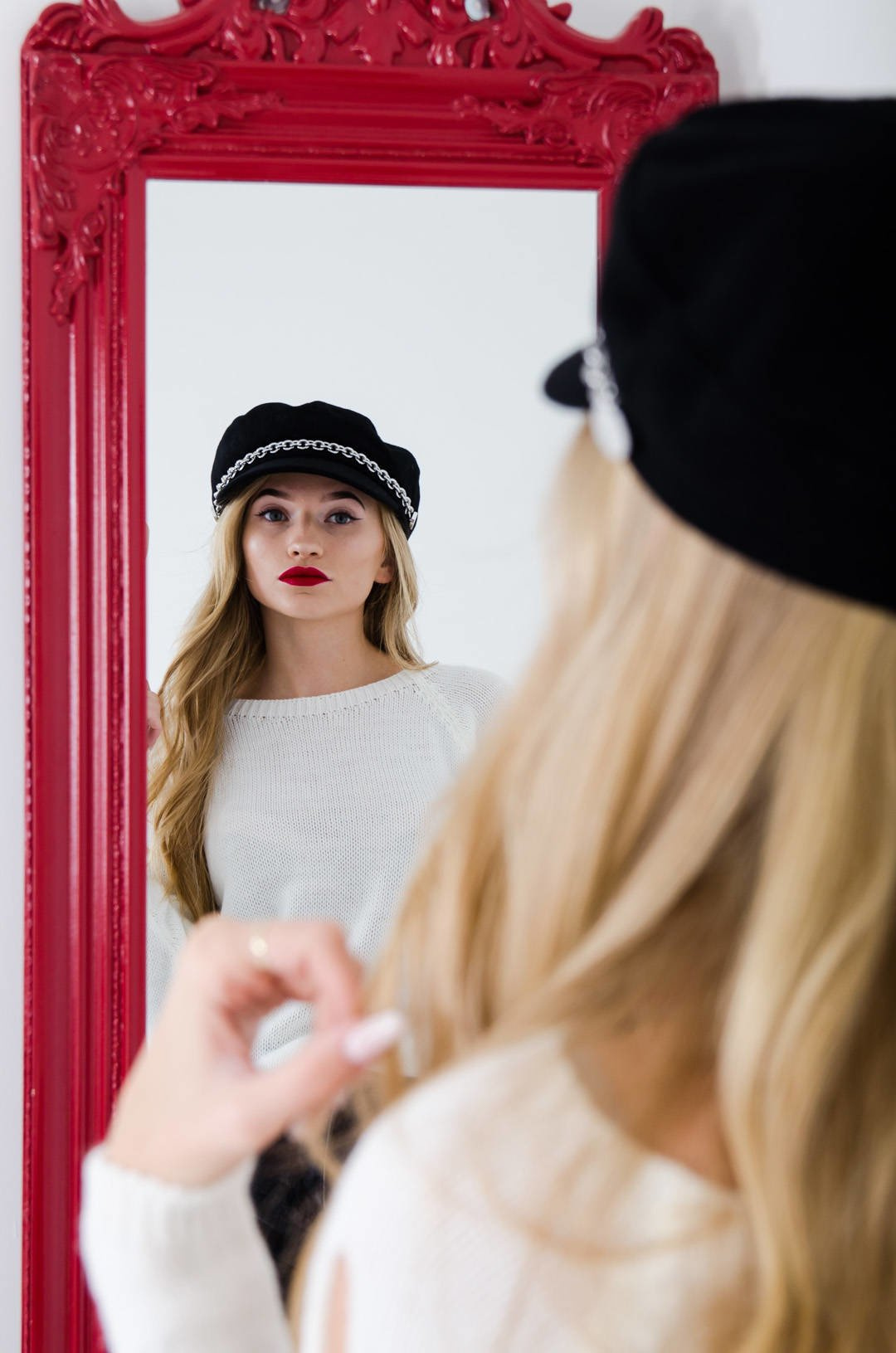 KREMOWY AKRYLOWY SWETER Z WSTĄŻKAMI NA RĘKAWACH