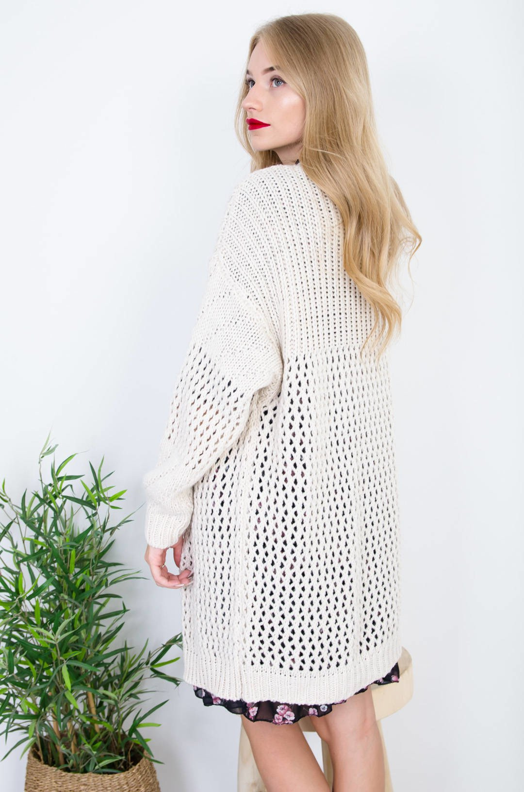 BEŻOWA AŻUROWA NARZUTA Z FRĘDZLAMI