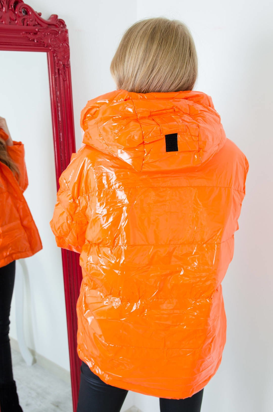 POMARAŃCZOWA WINYLOWA KURTKA Z KAPTUREM OVERSIZE