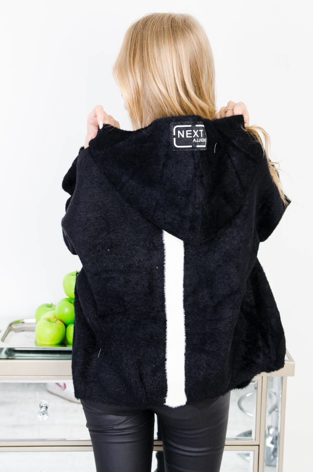 NARZUTA ALPAKA Z KAPTUREM - CZARNA