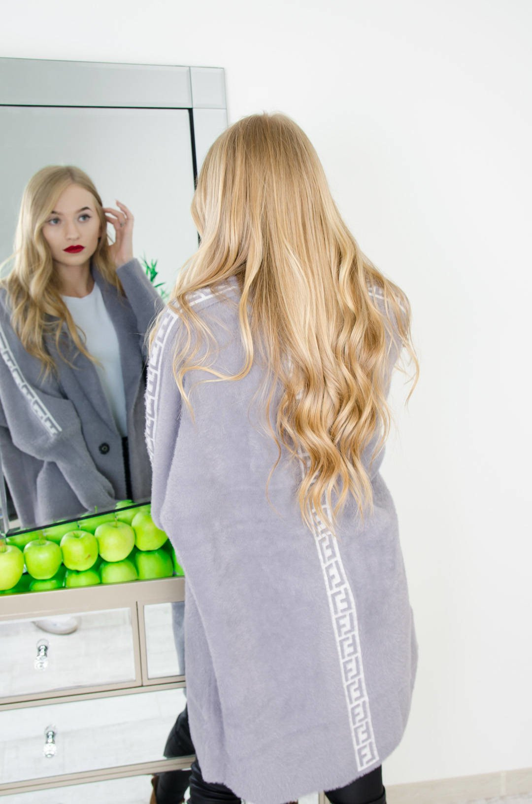 SZARA NARZUTA PŁASZCZ ALPAKA- JESIEŃ
