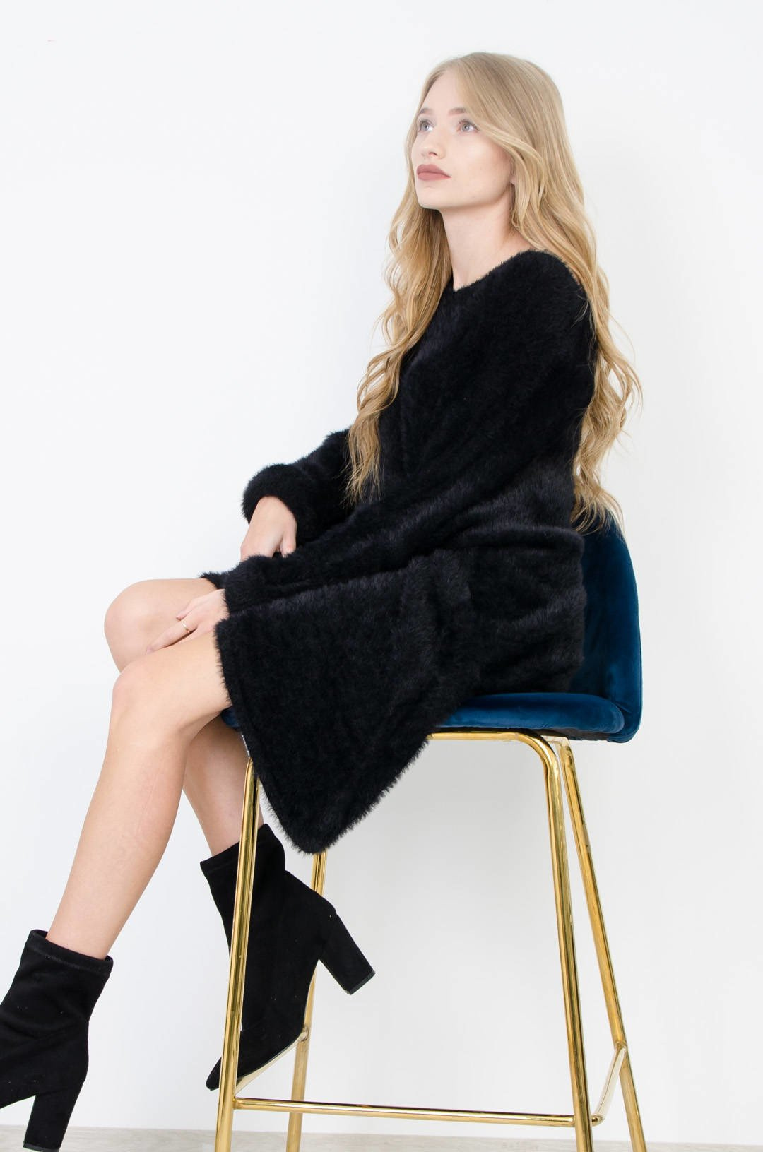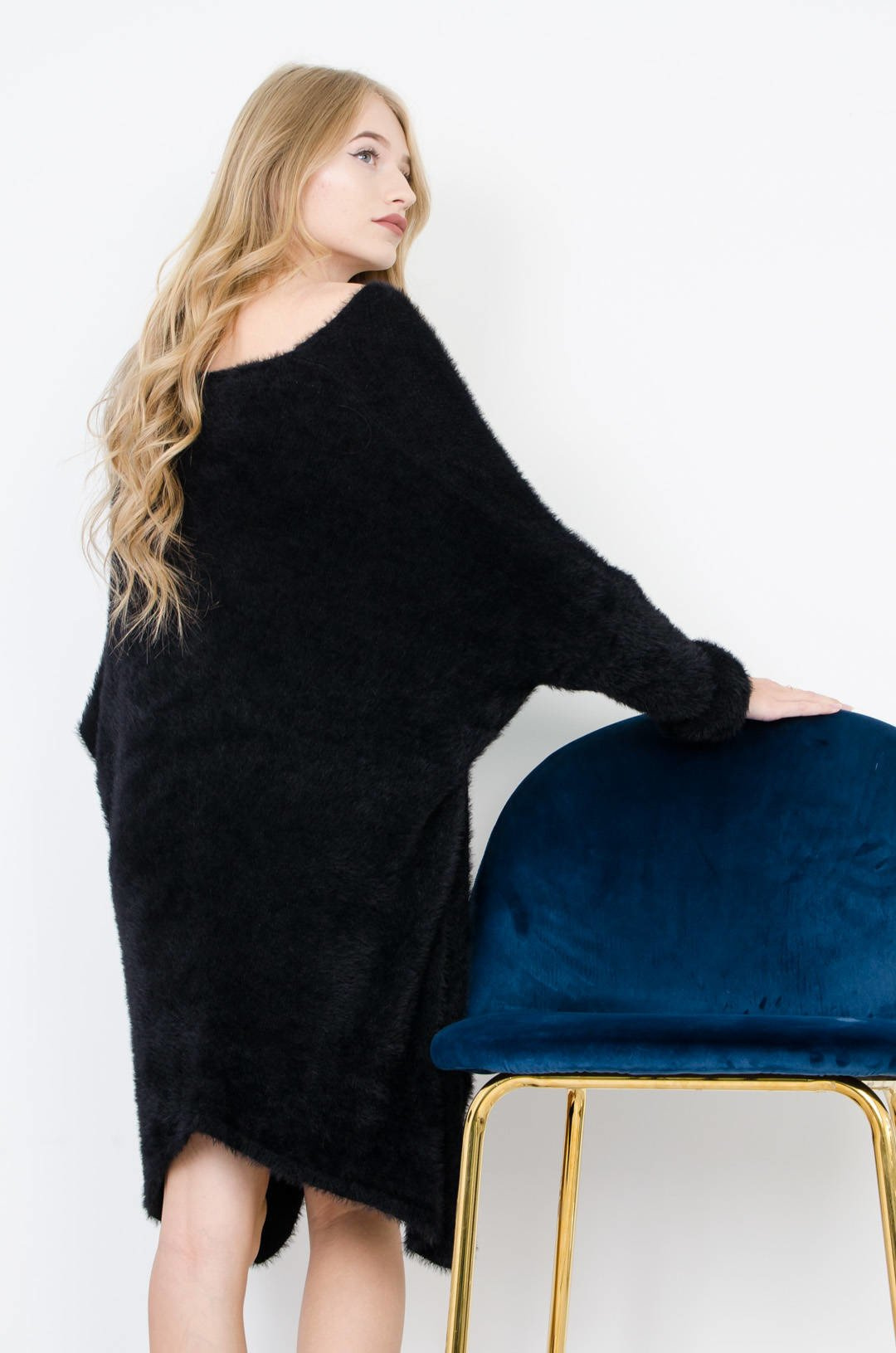 CZARNY WŁOCHATY SWETER Z DŁUGIMI BOKAMI