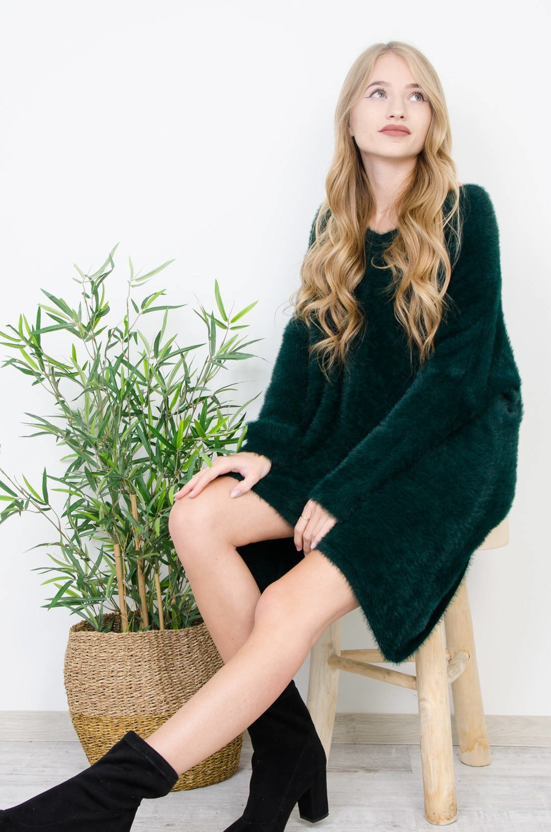 ZIELONY WŁOCHATY SWETER Z DŁUGIMI BOKAMI