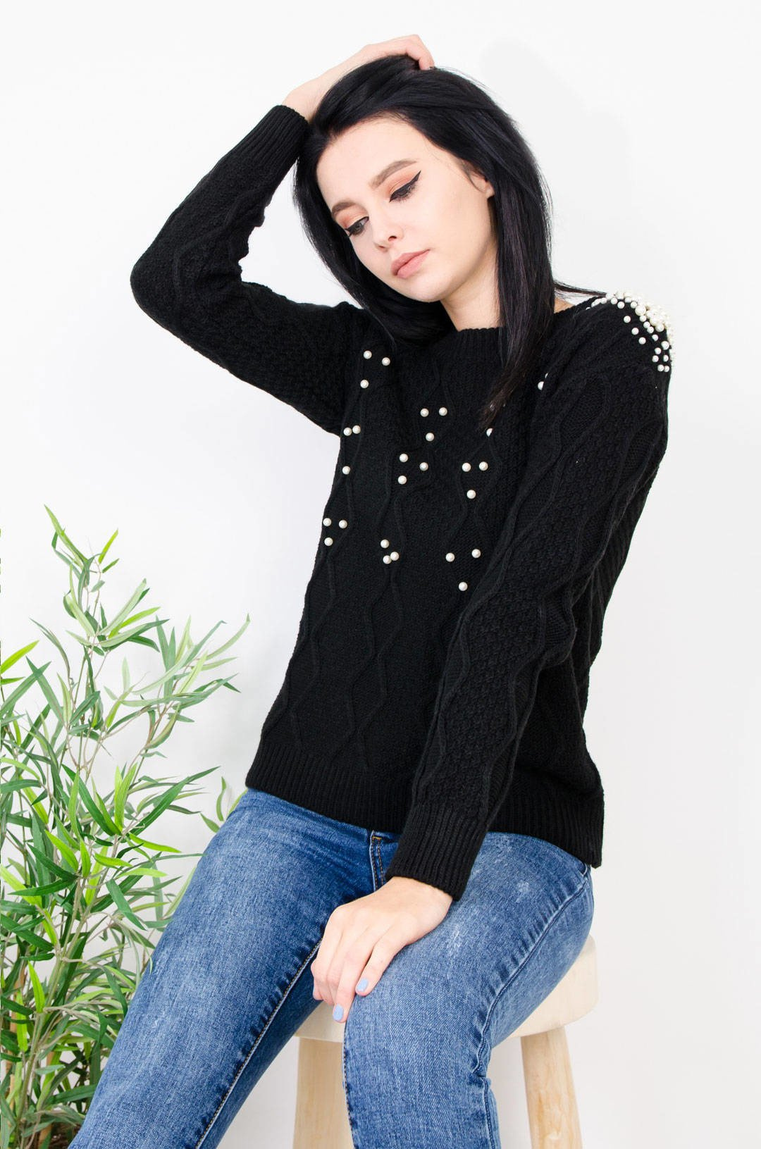 CZARNY SWETER Z PEREŁKAMI