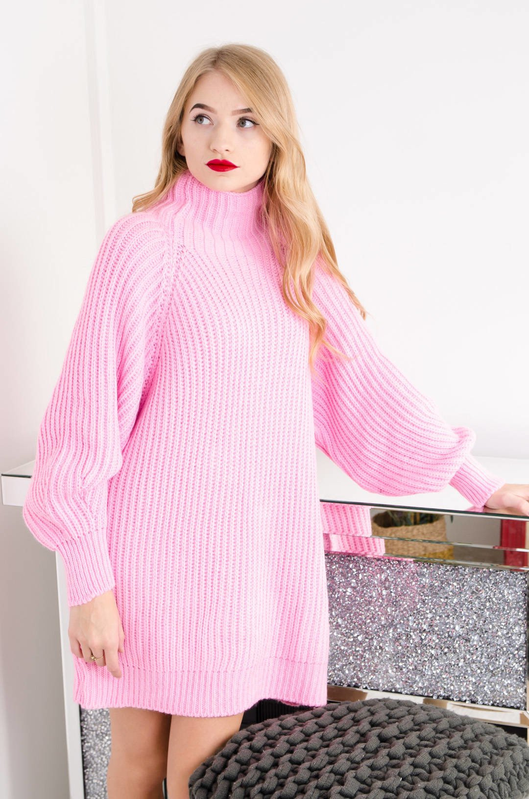 DŁUGI RÓŻOWY SWETER Z PÓŁGOLFEM