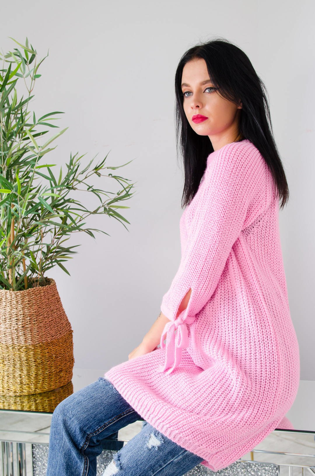 DŁUGI SWETER-SUKIENKA Z WIĄZANIEM NA RĘKAWACH