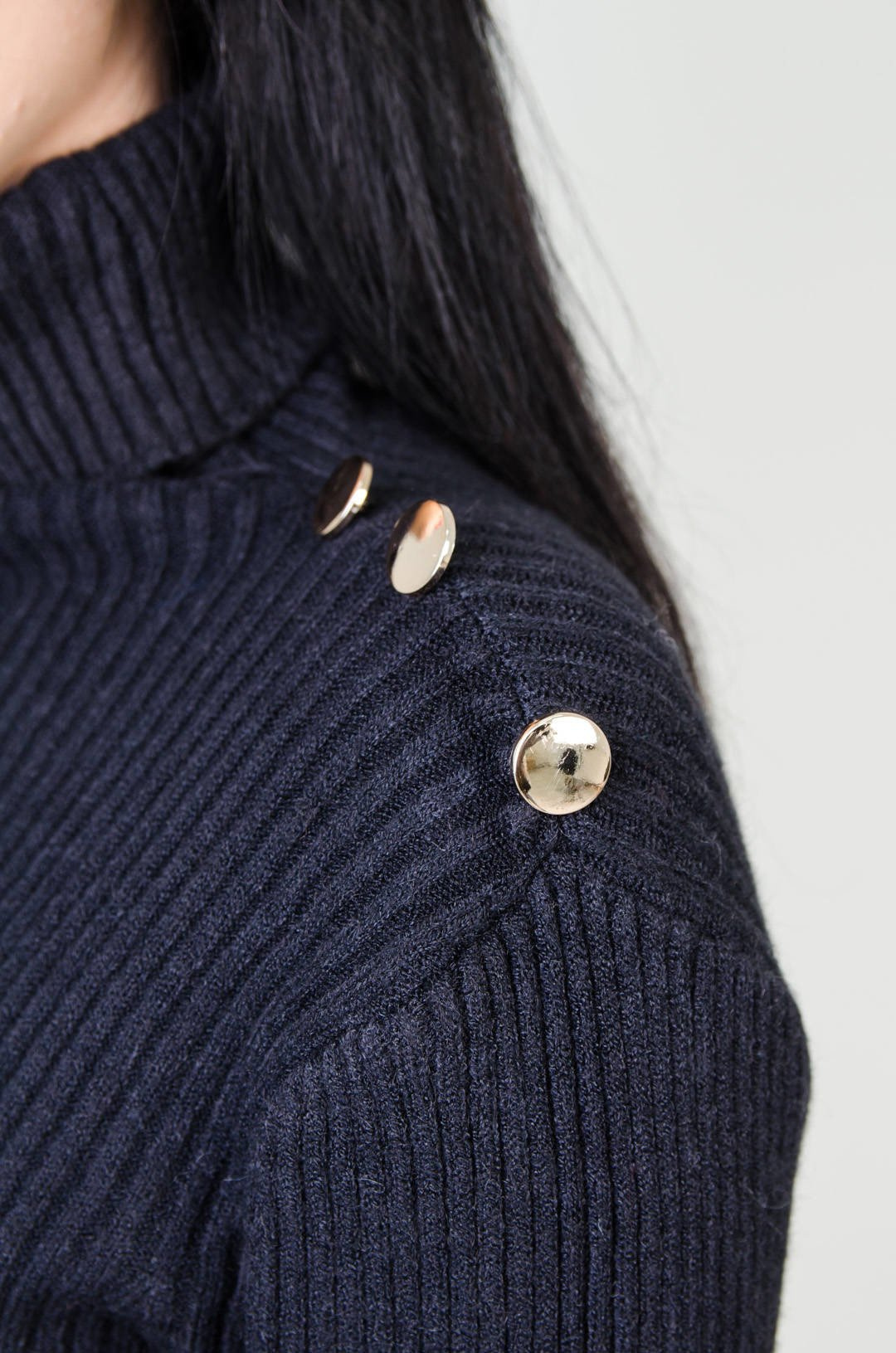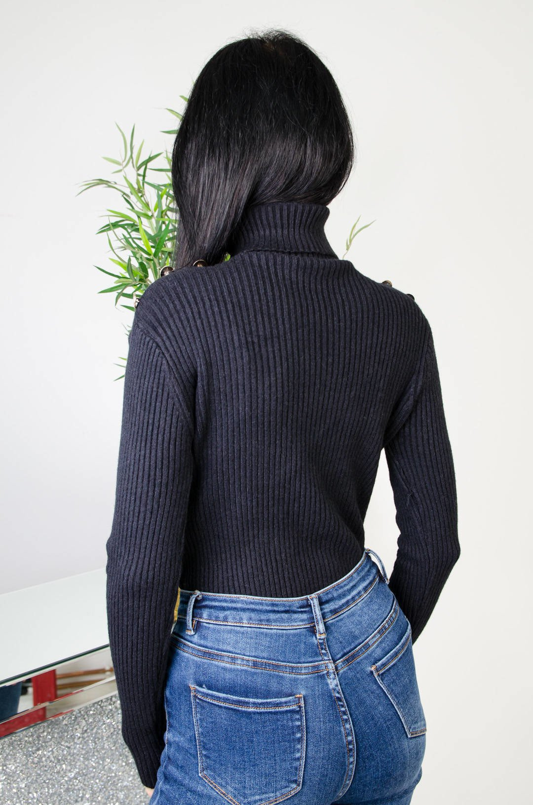 CZARNY PRĄŻKOWANY GOLF ZE ZŁOTYMI GUZIKAMI