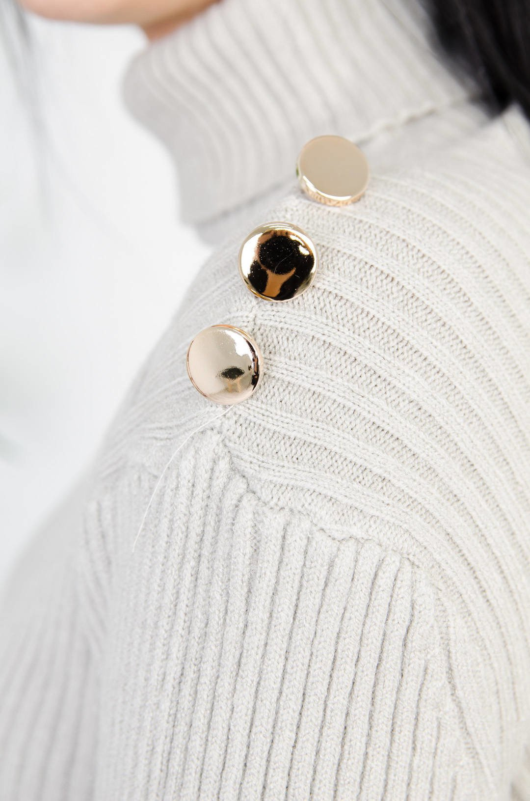 JASNO SZARY PRĄŻKOWANY GOLF ZE ZŁOTYMI GUZIKAMI