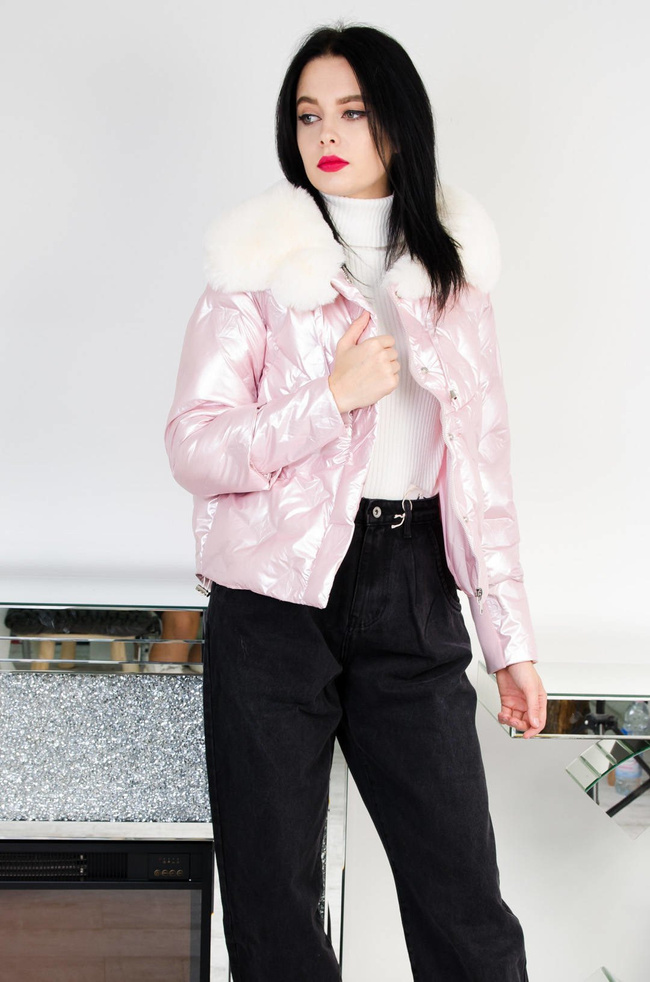 RÓŻOWA KURTKA Z BEŻOWYM KOŁNIERZEM-ŚCIĄGACZ W RĘKAWIE