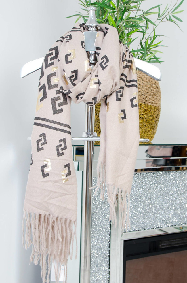 BEŻOWY SZAL ZE ZŁOTYMI ELEMANTAMI