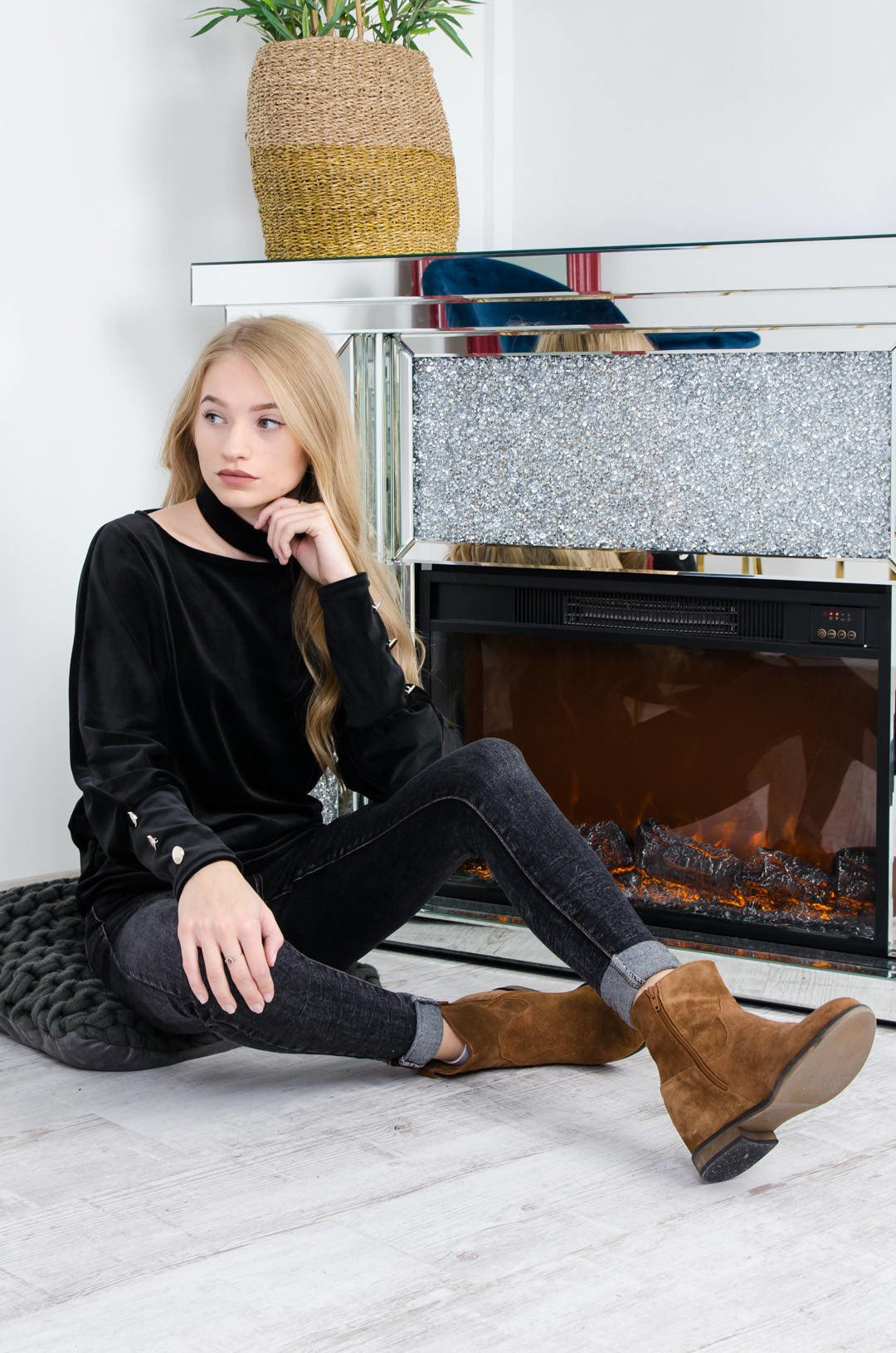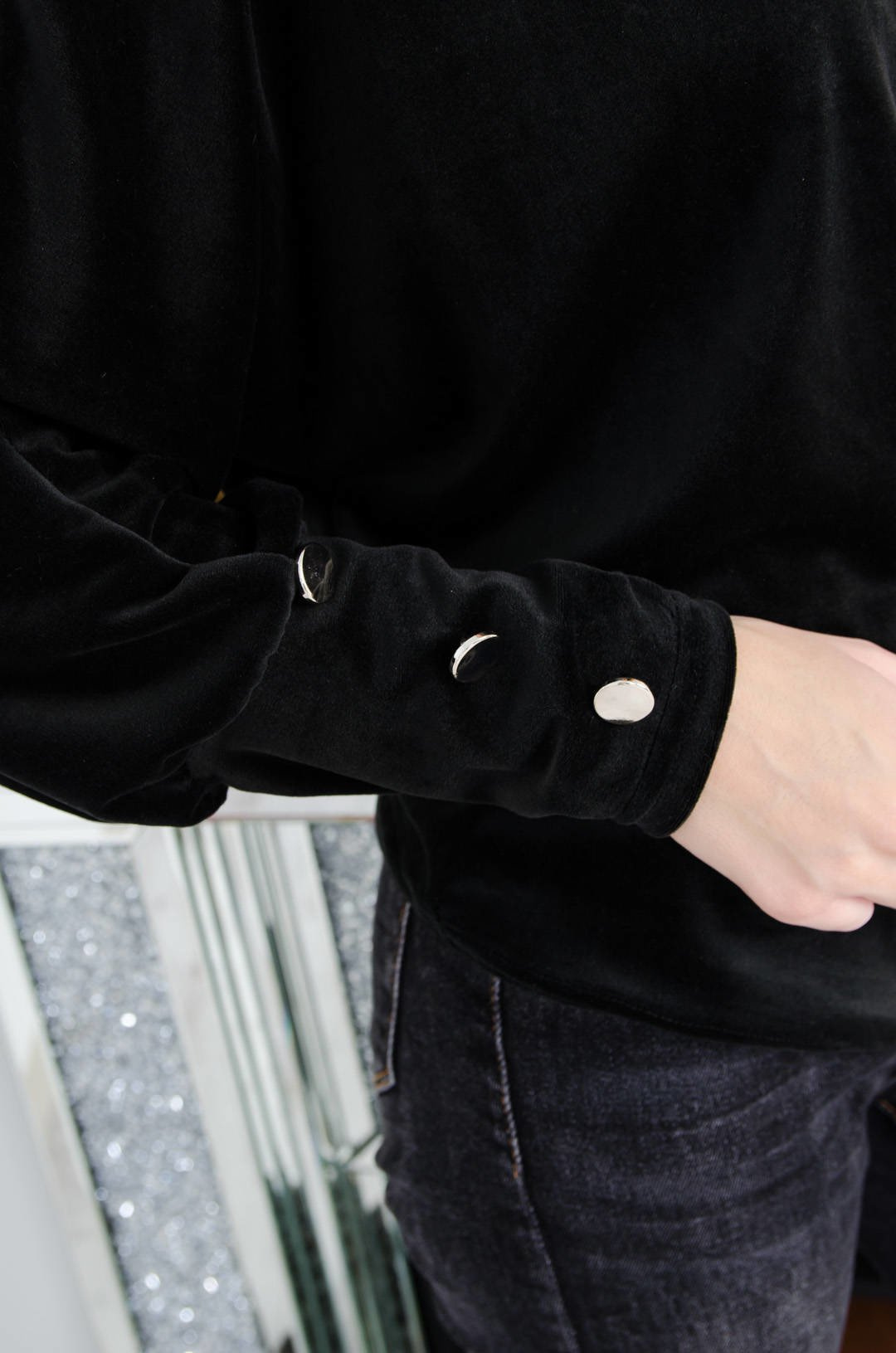 CZARNA WELUROWA BLUZA ZE ZŁOTYMI GUZIKAMI