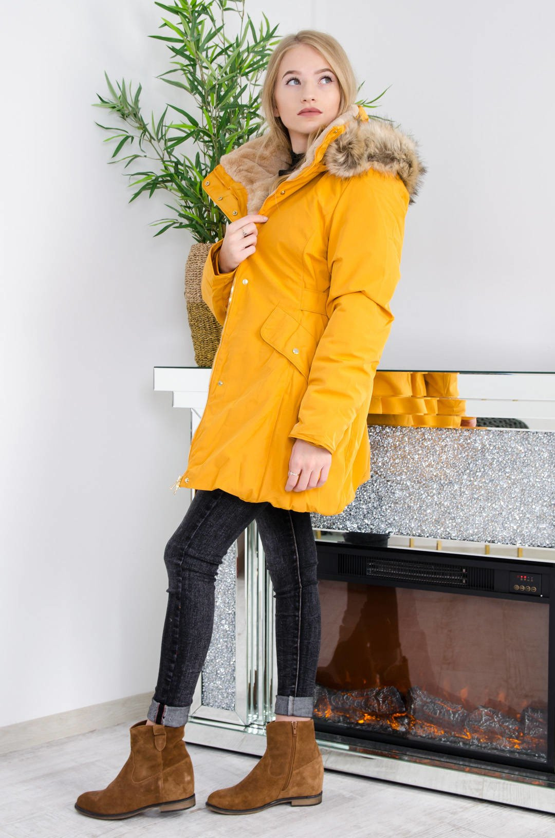 MUSZTARDOWA KURTKA ZIMOWA PARKA NA MISIU