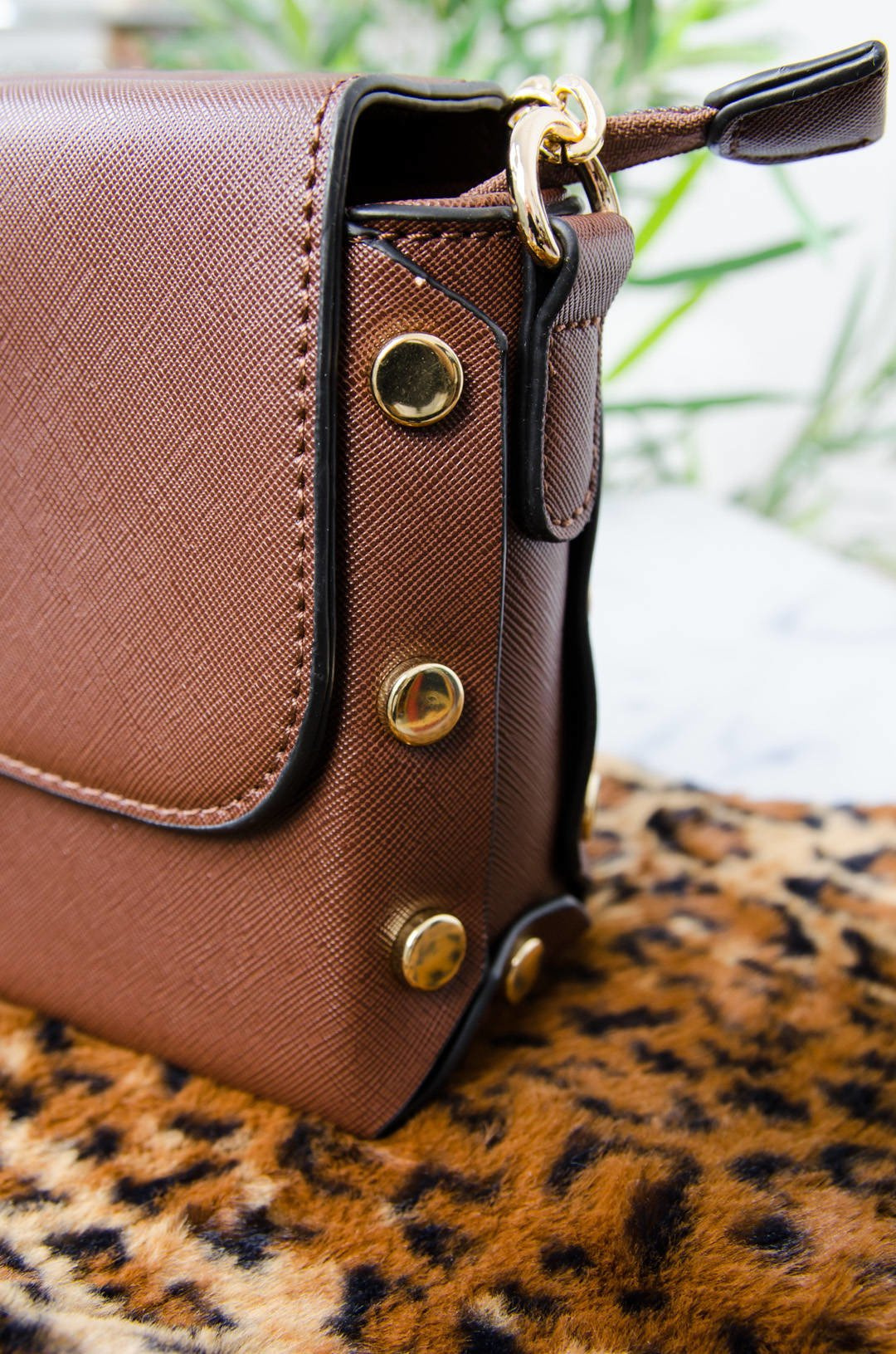 CIEMNO BRĄZOWA TOREBKA LISTONOSZKA ZE ZŁOTYMI GUZIKAMI