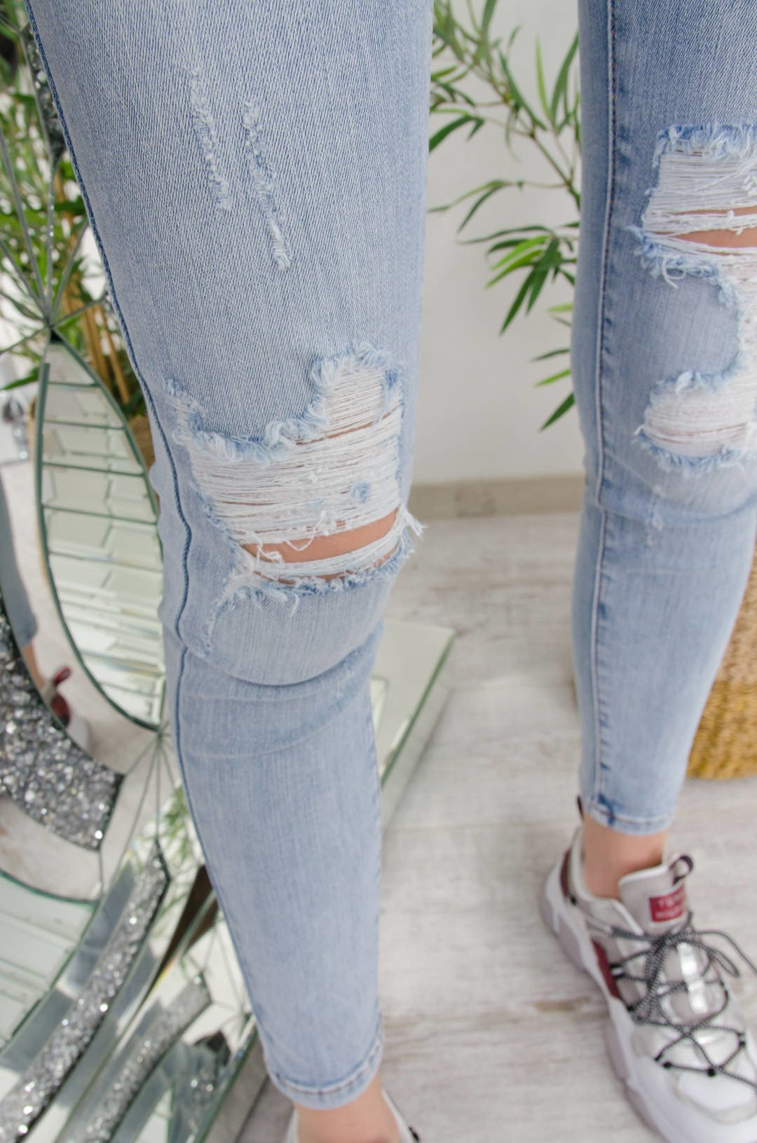 JASNE SPODNIE JEANSOWE Z PRZETARCIAMI