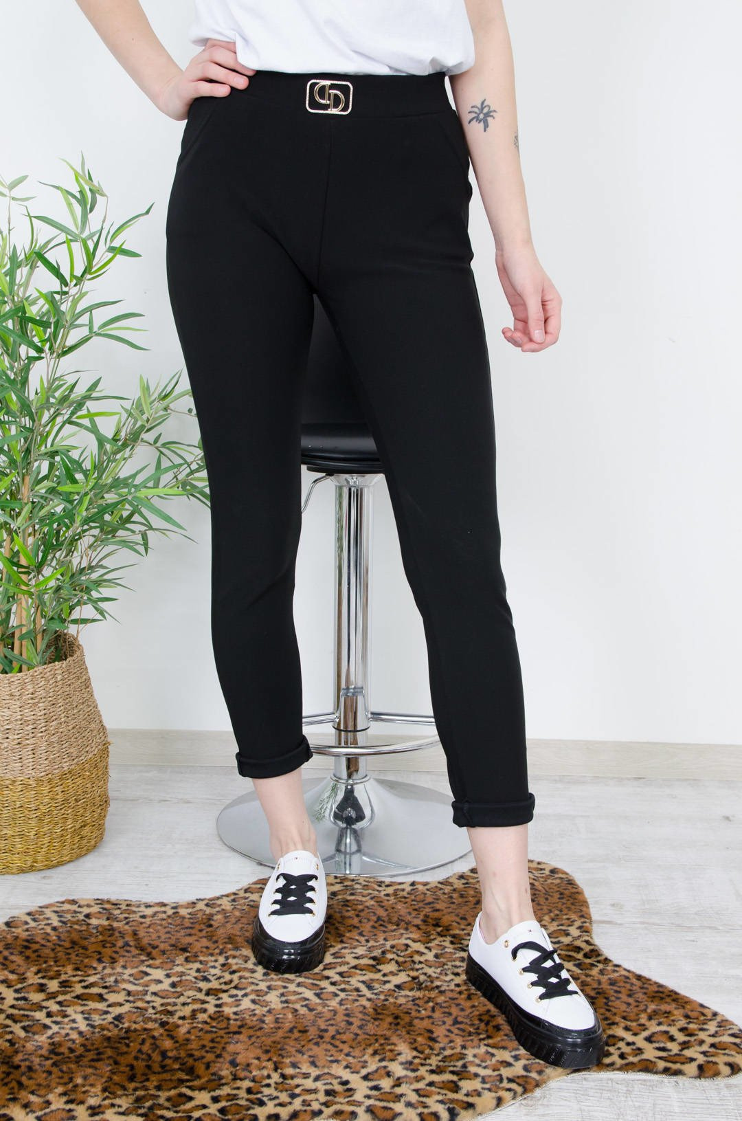 CZARNE LEGGINSY ZE ZŁOTYM ZNACZKIEM W PASIE