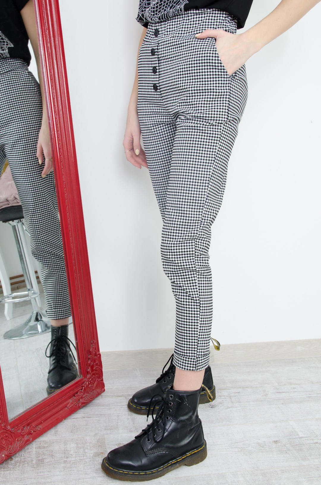BIAŁO-CZARNE SPODNIE W KRATĘ Z GUZIAKMI