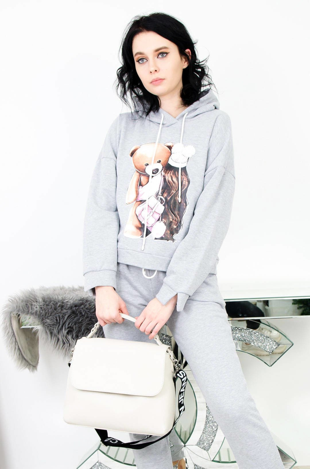 SZARY KOMPLET DRESOWY BLUZA + SPODNIE O LUŹNYM KROJU
