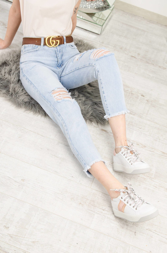 JASNE SPODNIE JEANSOWE TYPU BOYFRIEND Z DZIURAMI