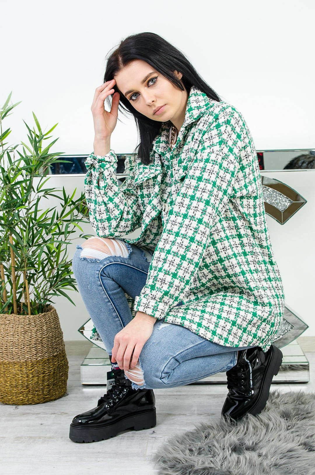NARZUTA KOSZULOWA W BIAŁO-ZIELONĄ PEPITKĘ