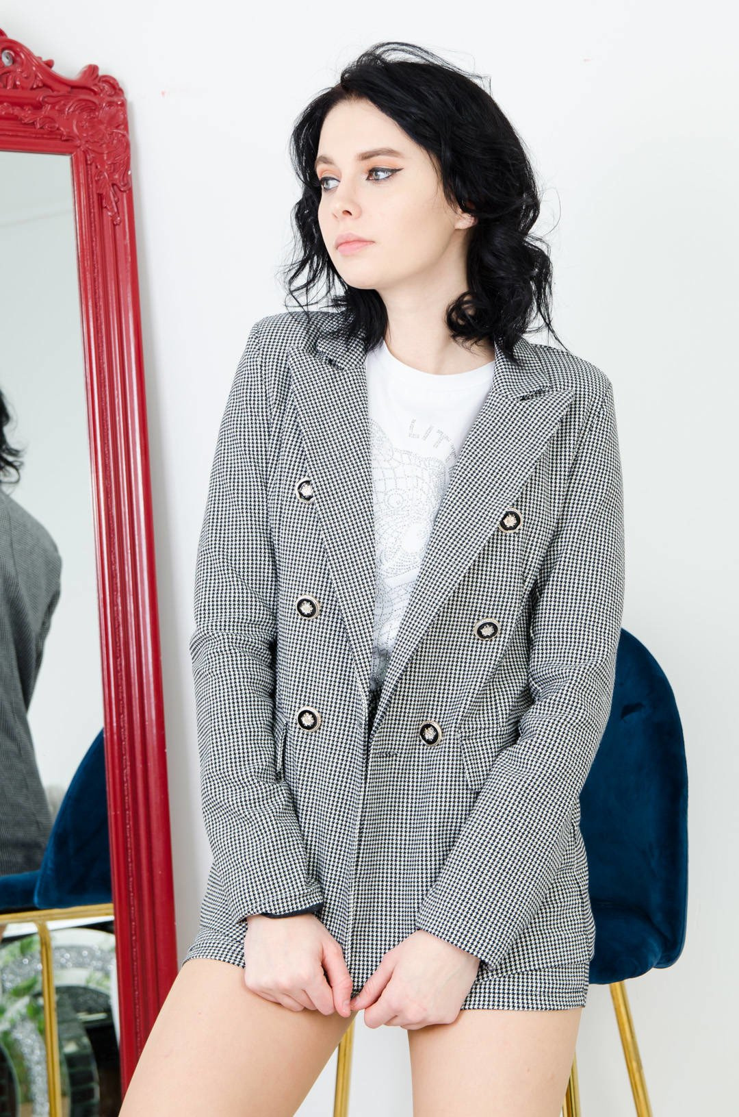 BIAŁO-CZARNA MARYNARKA W PEPITKĘ Z GUZIKAMI (S-XL)