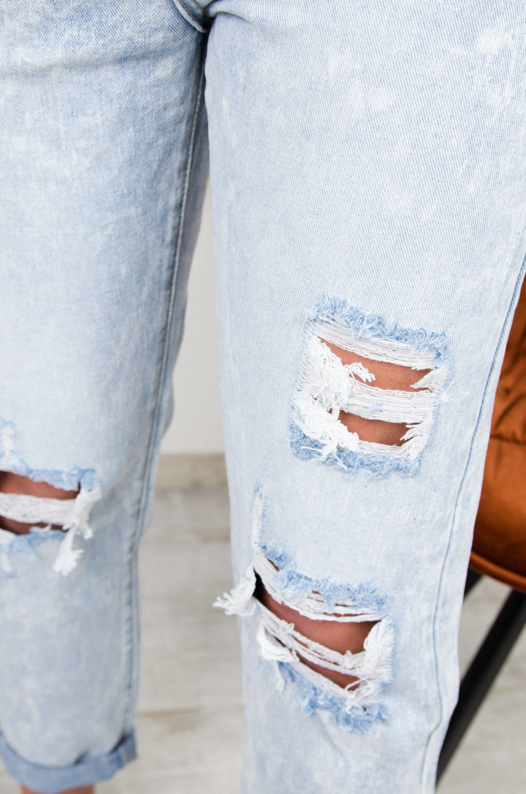 JASNE SPODNIE JEANSOWE BOYFRIEND Z WYSOKIM STANEM - DEKATYZOWANE